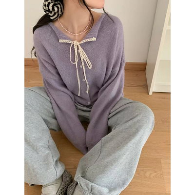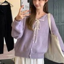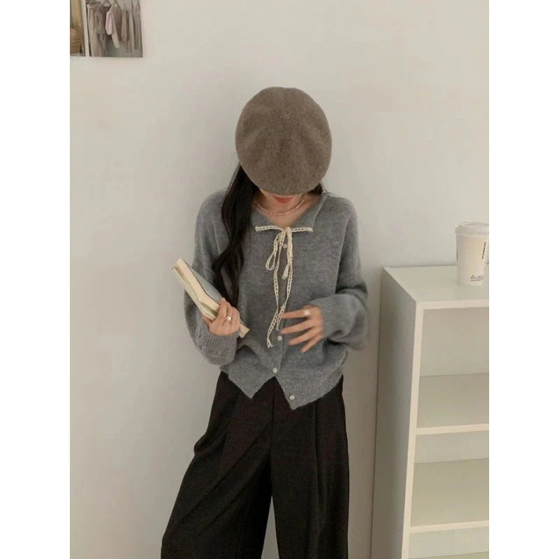 2025 秋冬 カーディガン ニット 韓国ファッション レース セーター アウター 新作 無地 可愛い ニットカーディガン レディース