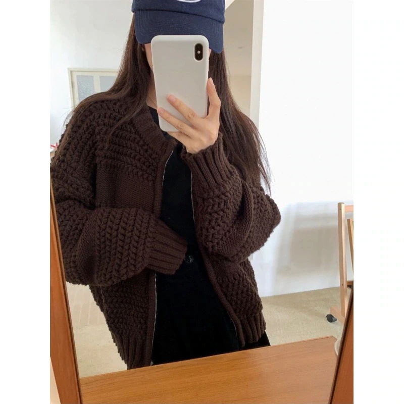 2025 秋冬 カーディガン ニット レトロ ニット セーター アウター ゆったり 厚手 ジッパー ニットカーディガン レディース