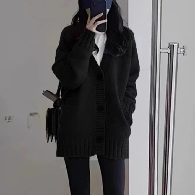 2025 秋冬 ニットカーディガン 新作 長袖ニットトップス 無地 ストレッチ レディース
