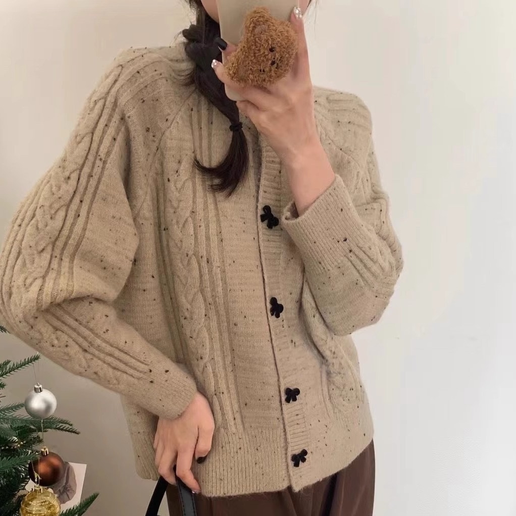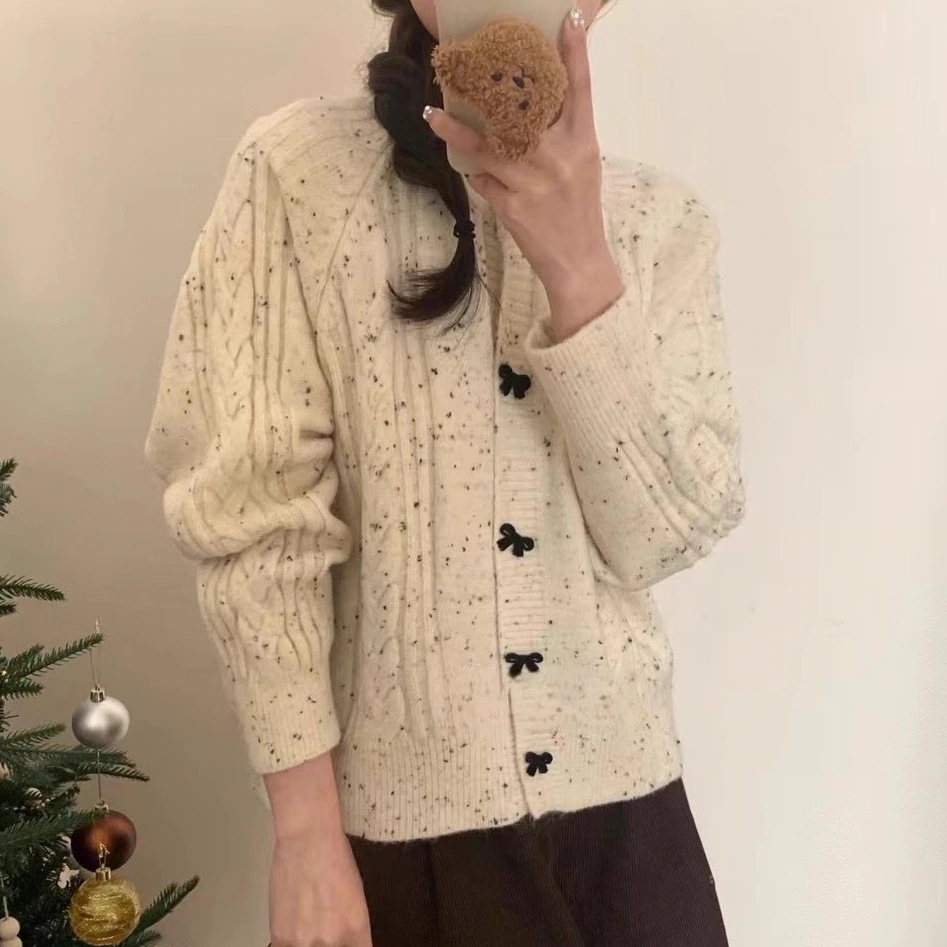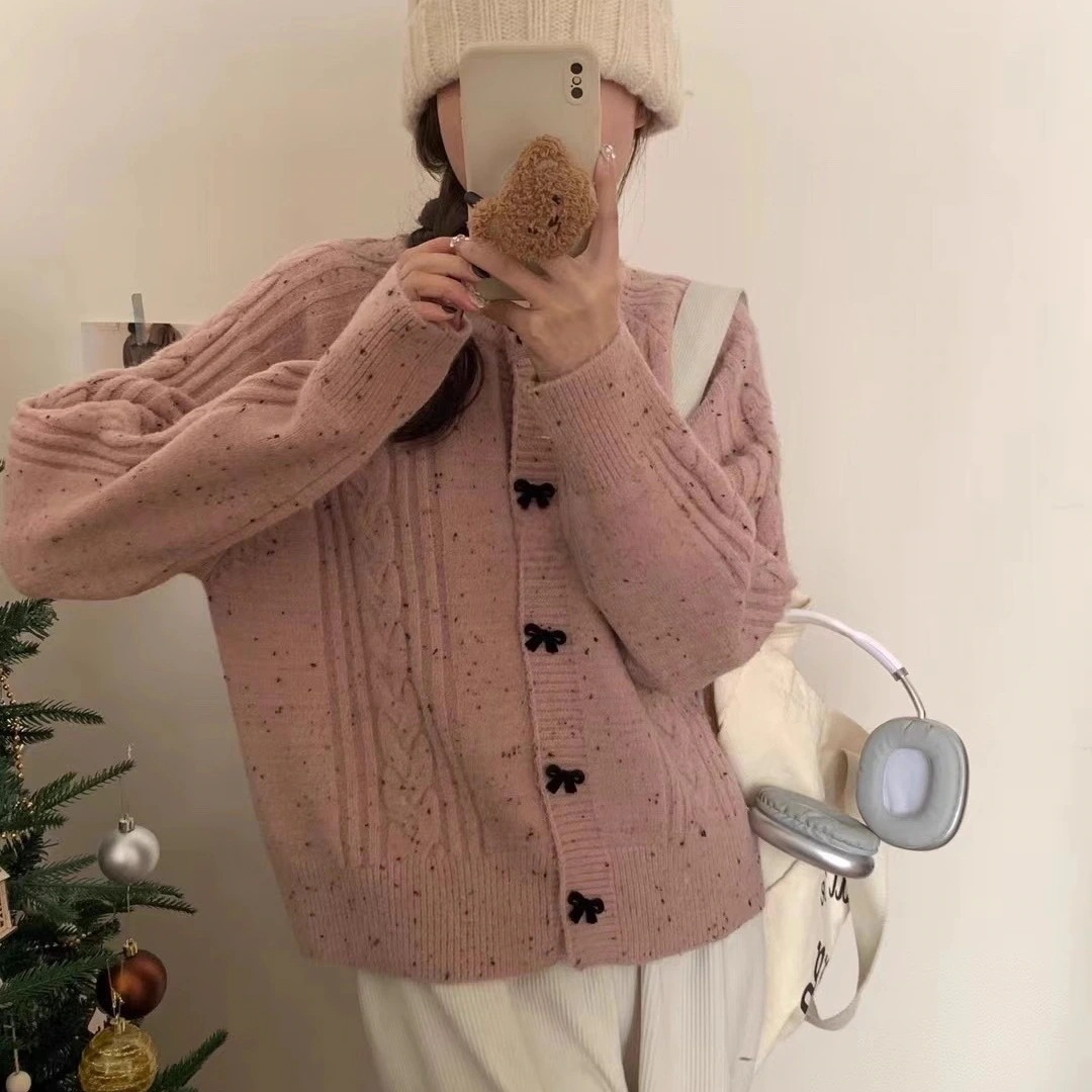 2025 秋冬 ニットカーディガン 新作 韓国ファッション ゆったり レース ニットトップス レディース
