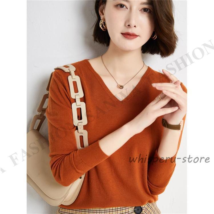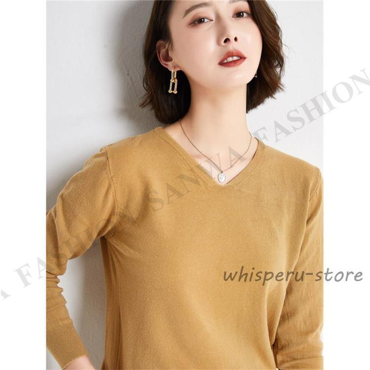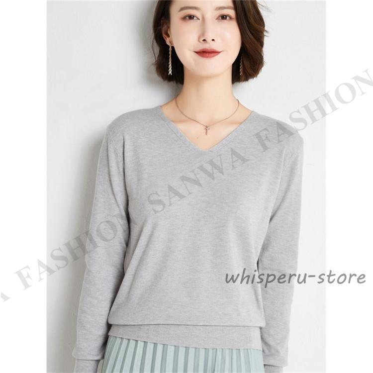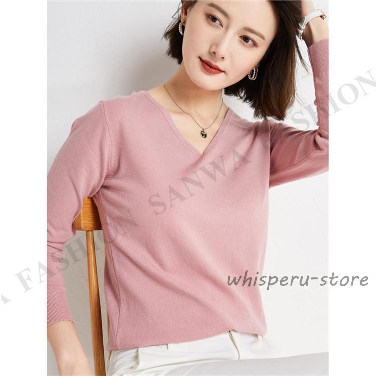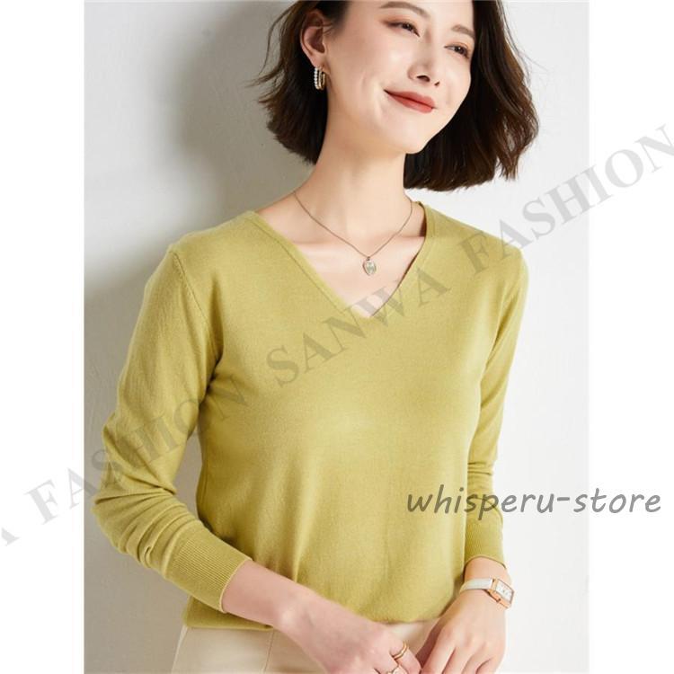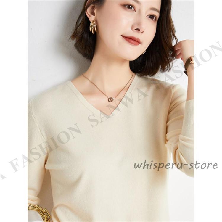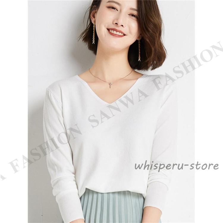 ニット セーター レディース トップス Vネック 製品気質 プルオーバー 長袖 カットソー インナー 薄手 無地 暖か シンプル 通勤 部屋着
