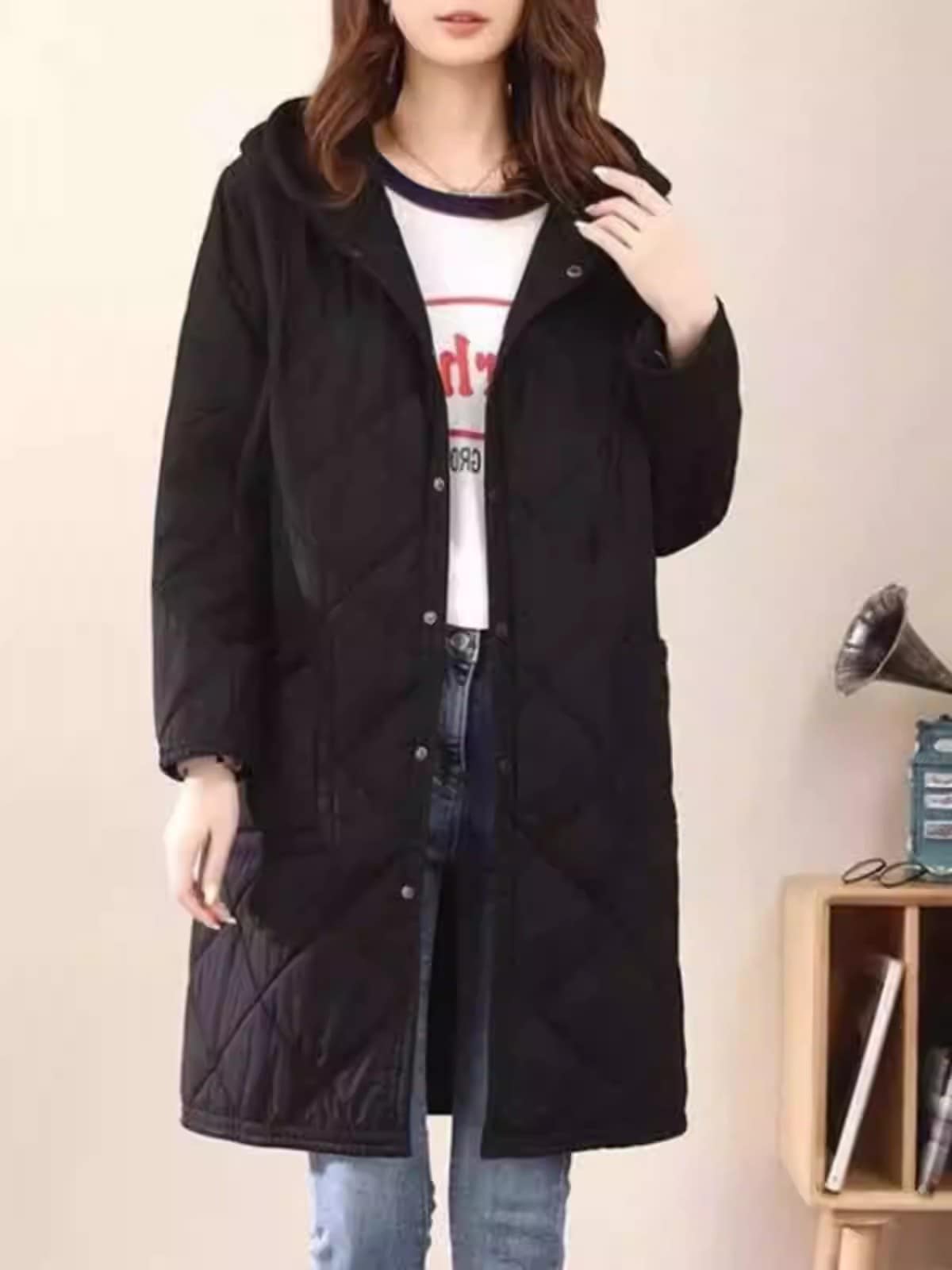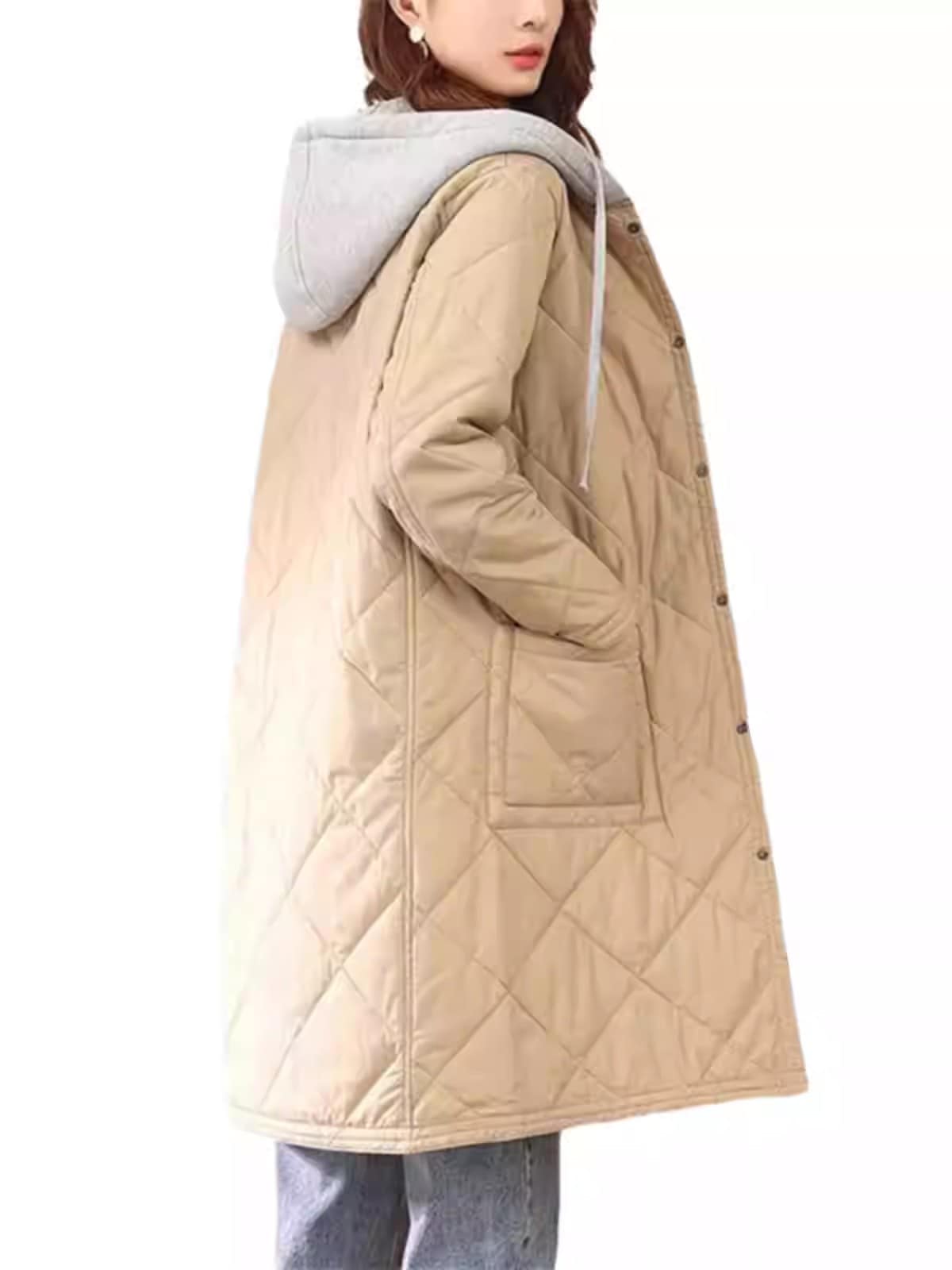 ダイヤモンドキルト フード付き 軽量 ダウン 綿入れ 万能流行感 秋冬 ルーズ 厚手 保温 パーカ アウター 綿入れ レディース コート