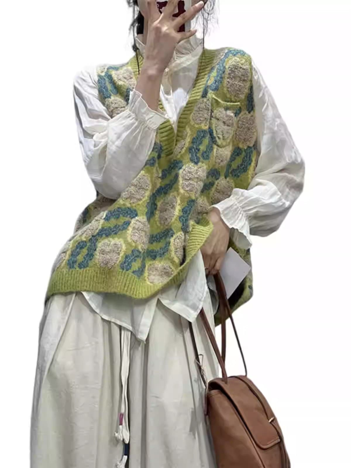 レトロ カラーリング ニット ベスト 秋冬 ルーズ カジュアル レイヤード 新品 大人気 プルオーバー Vネック ノースリーブ ショール ベスト