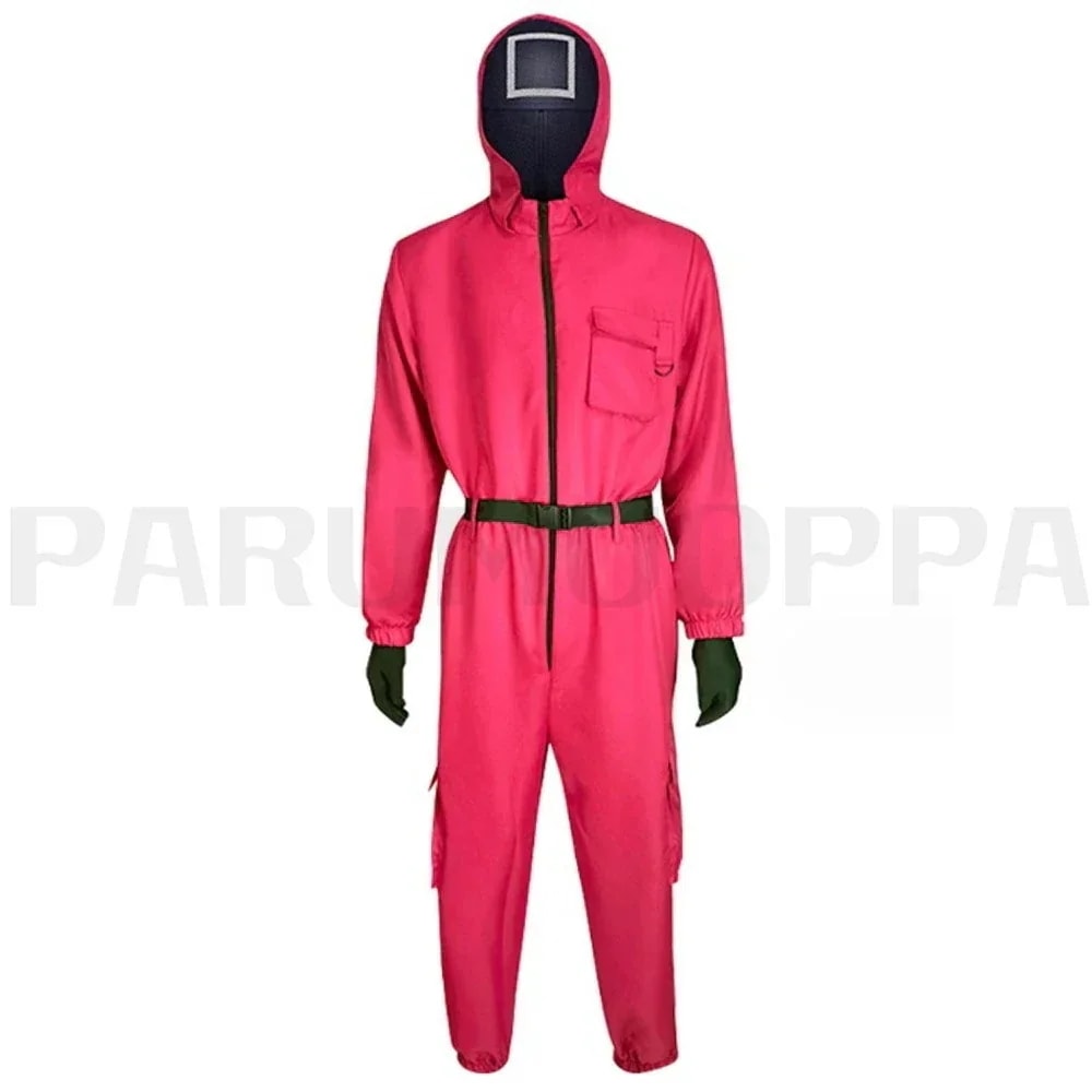 【3日出荷】4点セット イカゲーム コスプレ マスク付き 監視員 つなぎ イカゲームコスプレ 仮装 赤い服人 コスチューム 韓国 かわいい 面白い クリスマス 新 ハロウィン