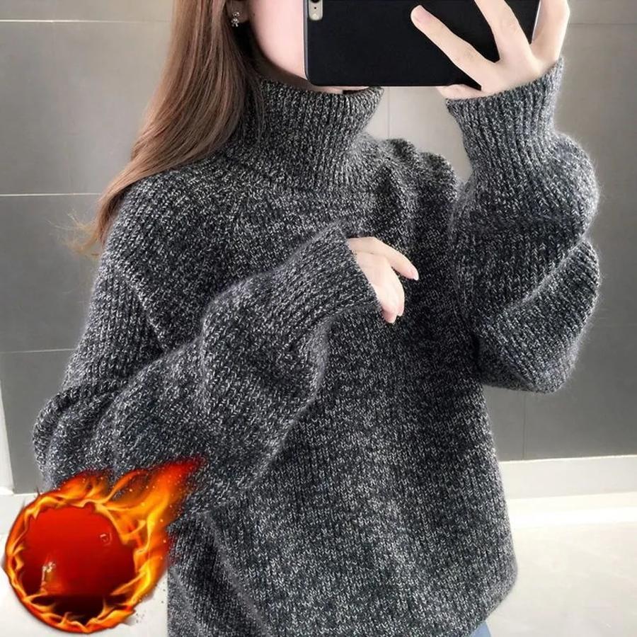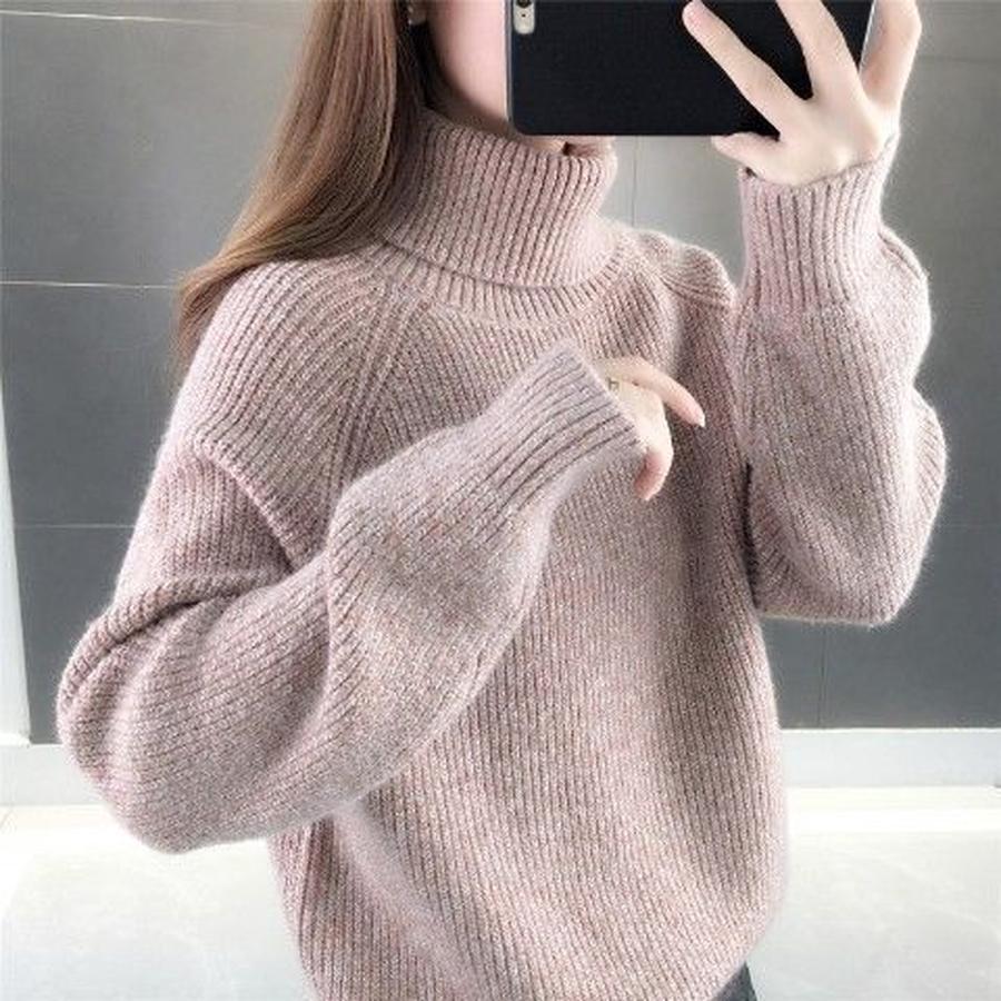 ベ一シックニット 怠惰な風ックニットトップス 超保温セーター レディース 韓国ファッション厚手 裹起毛 ニット長袖 ゆったりタートルネック