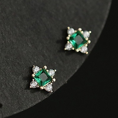 ピアス レディース 金仕上げ 花 小さめ エメラルド ジルコニア採用 アレルギー対応 ポイント消化 大人 可愛い アクセサリー
