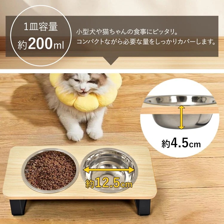 ペットボウル ペット用食器 ペット用 フードボウル ネコボウル 2皿タイプ 斜面 お手入れ簡単 組立簡単ステンレス皿 食器台 水飲み 工サ用 お水用 小型犬 猫 pt097
