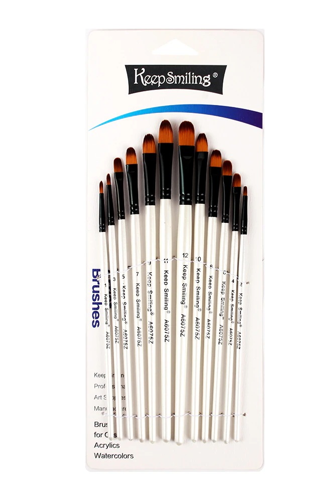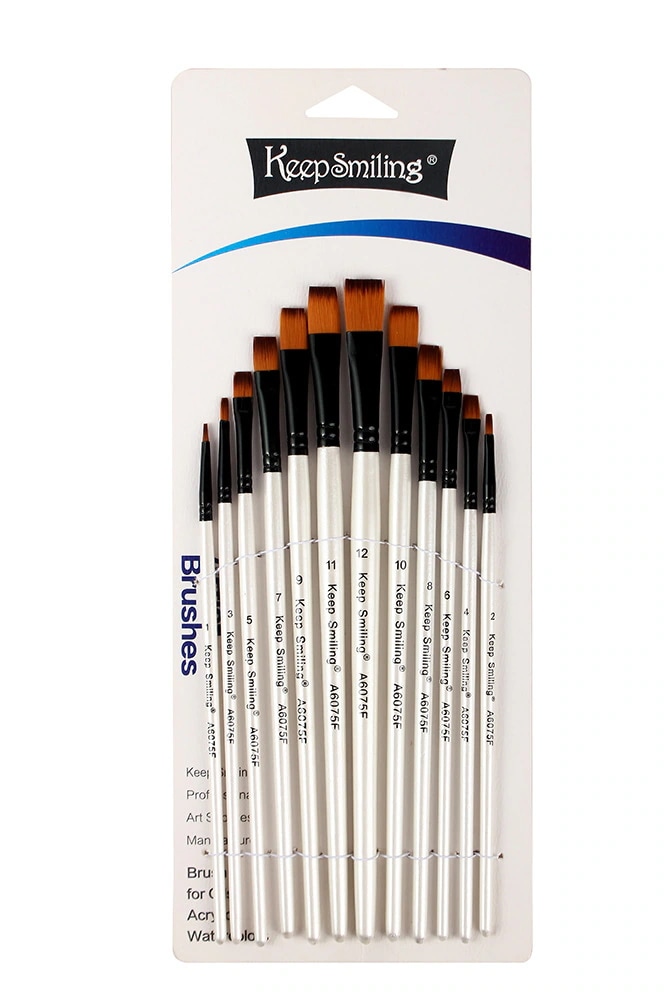 油絵 筆 画筆 画材筆 水彩筆 ペイント ブラシ アクリル筆 平型筆 クリル絵の具 12本セット