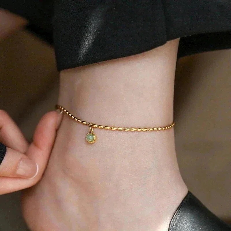 25新作 アンクレット ゴールド感のある小さな緑豆足輪大人アクセサリー