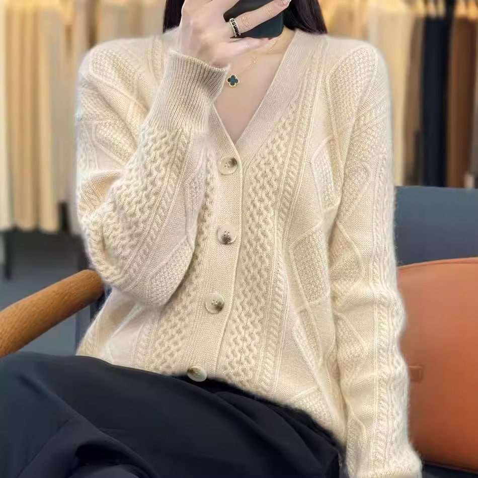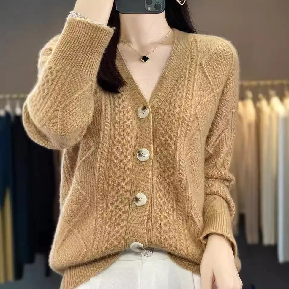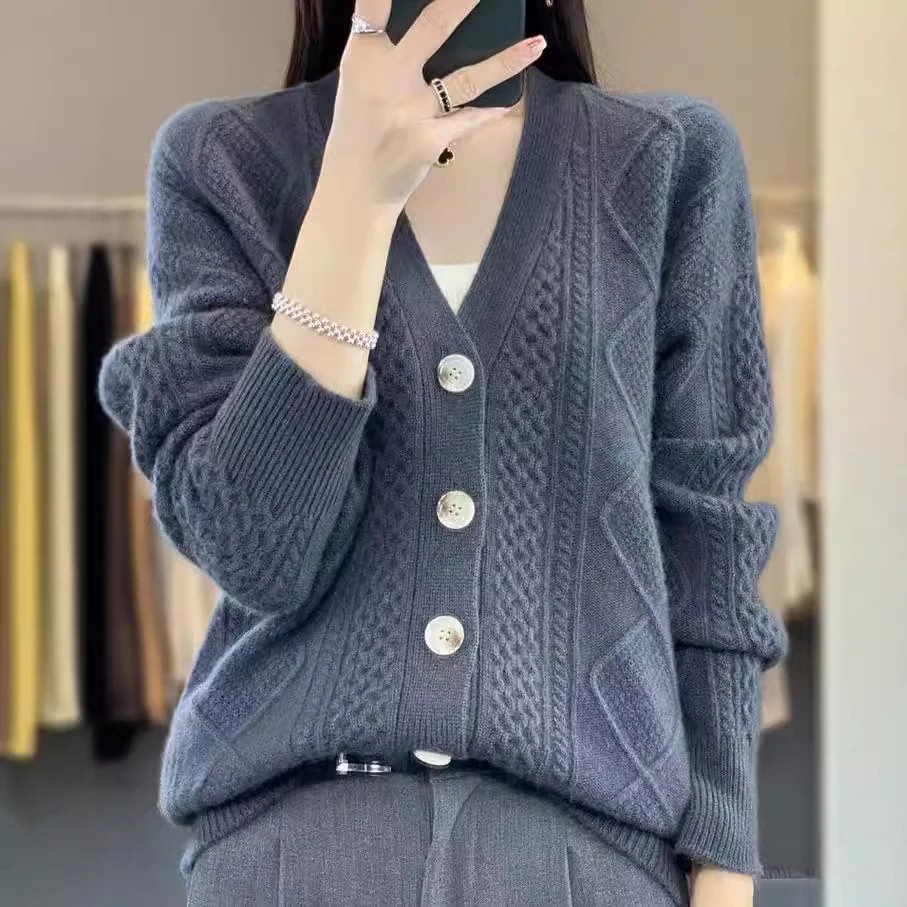 品質いいな 服 シンプルダイヤモンドVネックニットカーディガン 無地 長袖トップスニットシアーシャツ 日ファッション