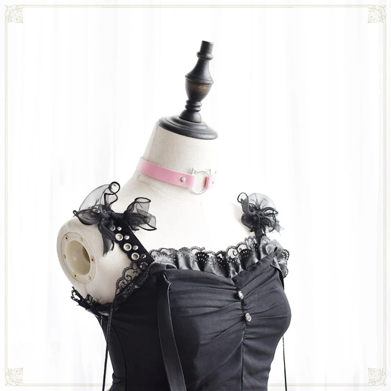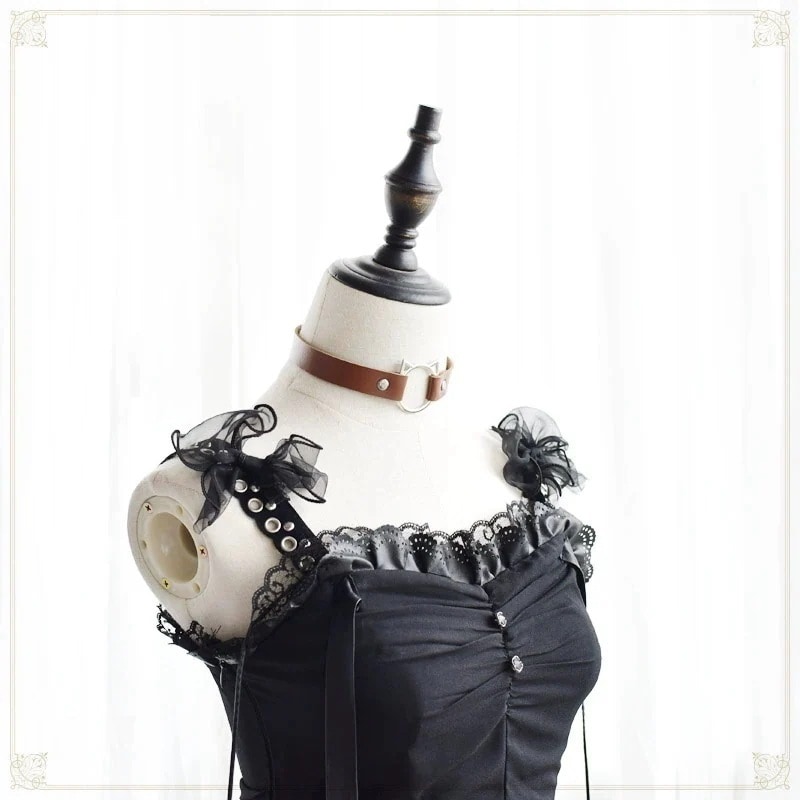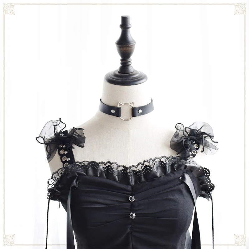 ダークロリータキャットキャットイヤーパンクチョーカーメタルカラーゴシックPUレザーネックレス