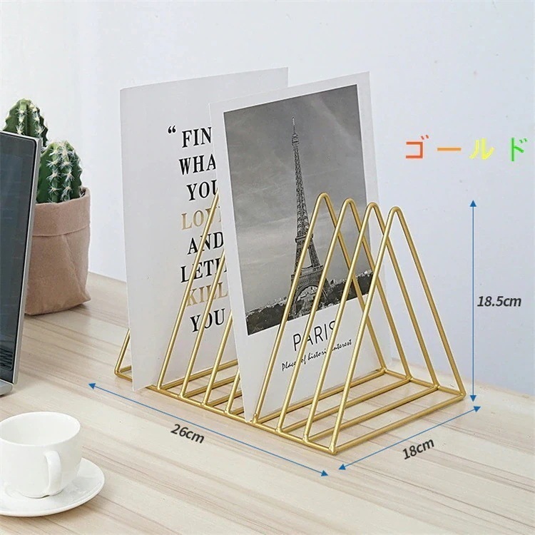 新作しんさく大 洗練された 卓上ブックエンド 簡易 鉄芸書架 事務室 雑誌収納棚 三角書報棚 整理書架 デザインセンス 書立
