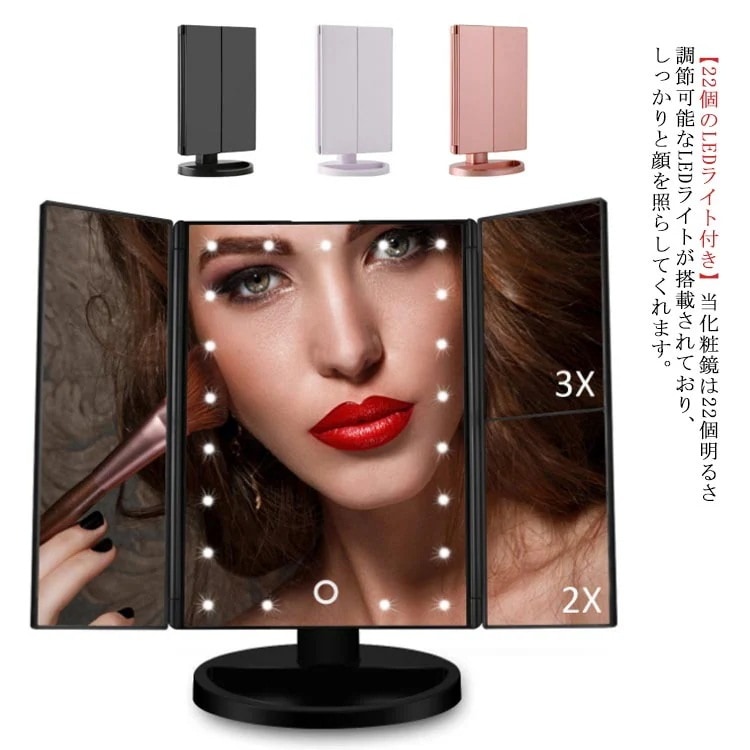 品質は悪くなくてです化粧鏡 ミラー 三面鏡 2 3倍 記憶機能 拡大鏡 化粧ミラー 鏡 LEDライト付き 折りたたみ 卓