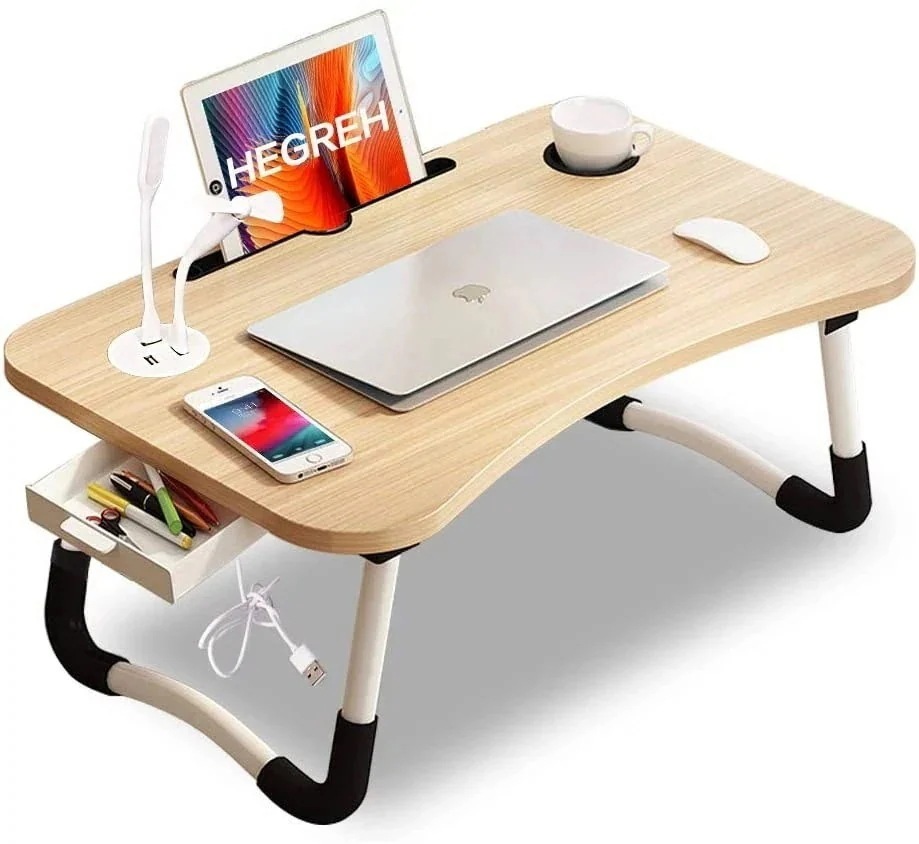 発売ストレージ 収納 引き出し USB ファン LED ライト 折りたたみ式 パソコン レイジー デスク 勉強 ベッド デスク 寮 小さなデスク
