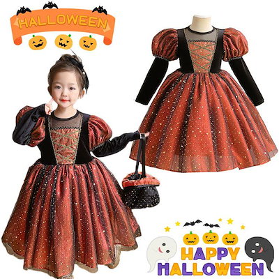 新作即納女の子 ハロウィーン衣装 ハロウィン 魔女 仮装 ハロウィン衣装 コスチューム ハロウィン かぼちゃ 魔法使い ワンピース オレンジ 女の子 プリンセス スドレス女の子 ハロウィーン衣装