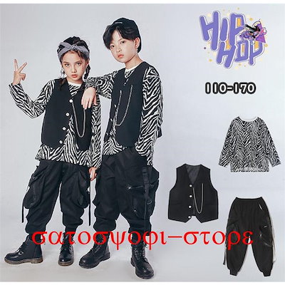 新作即納キッズダンス衣装 3点セット カッコイイ ベスト パンツ 長袖シャツ トップス ヒップホップ ストリート B系 パンツ hiphop 女の子 男の子 jazz ジャッズ ダンスキッズダンス衣装