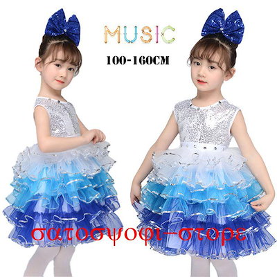 新作即納キッズダンス スパンコール チアガール ダンス衣装 韓国子供服 ドレス ワンピース 女の子 こども服 チュールワンピース 肩出し 姫系 可愛い カジュアル ハロウキッズダンス スパンコール
