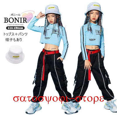 新作即納キッズダンス ダンス衣装 ヒップホップ キッズ セットアップ バケットハット 長袖シャツ へそ出し ロングパンツ トレーナー ダンス衣装 トップス ブラックパンツキッズダンス ダンス衣装