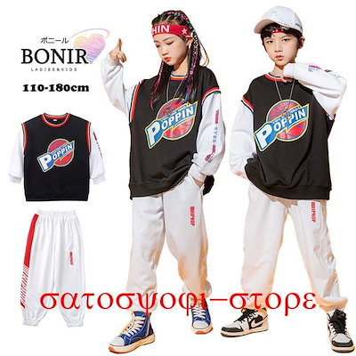 新作即納キッズダンス衣装 セットアップ ヒップホップ キッズ トレーナー 重ね着風 2点セット ダンス衣装 白パンツ 切り替え トップス ジュニア ダンス衣装 キッズ 男のキッズダンス衣装 セットアッ