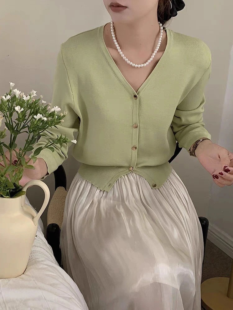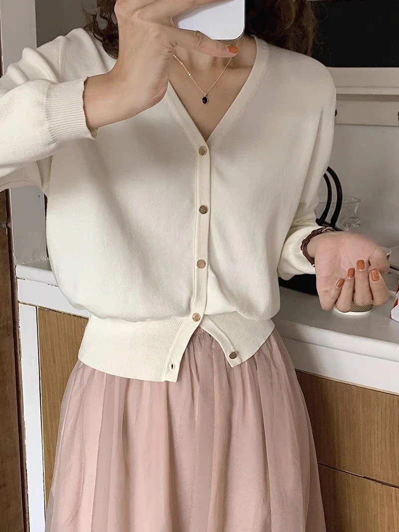 秋 ニットカーディガン vネック セーター ニットトップス カジュアル レディースファッション