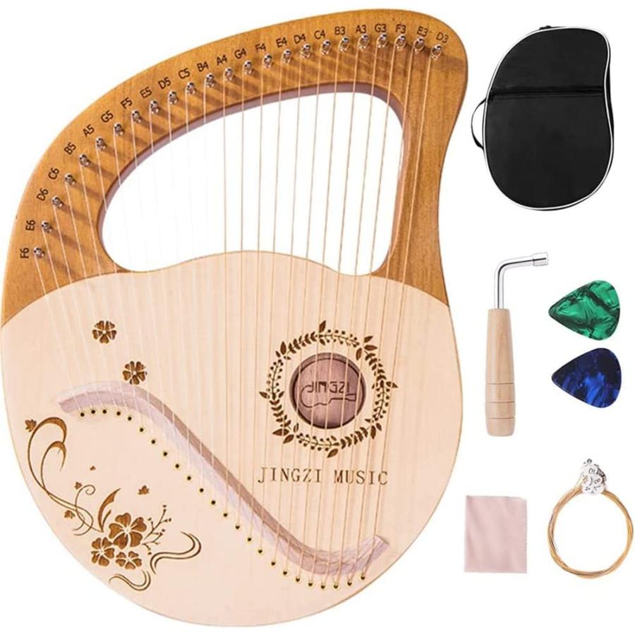 2026流行新番24弦 ライアーハープ 竪琴ハープ 金属弦 マホガニーソリッドウッド 心癒し 弦楽器 ポータブル 初心者向け チューニングレンチ 収納袋付 子供用 成人用