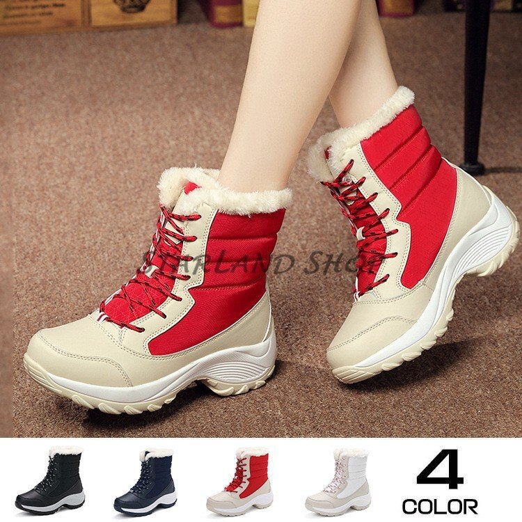 注目商品スノーシューズ レディース スノーブーツ 防寒靴 厚底 レースアップ 編み上げ 裏ポア 撥水 ハイカ