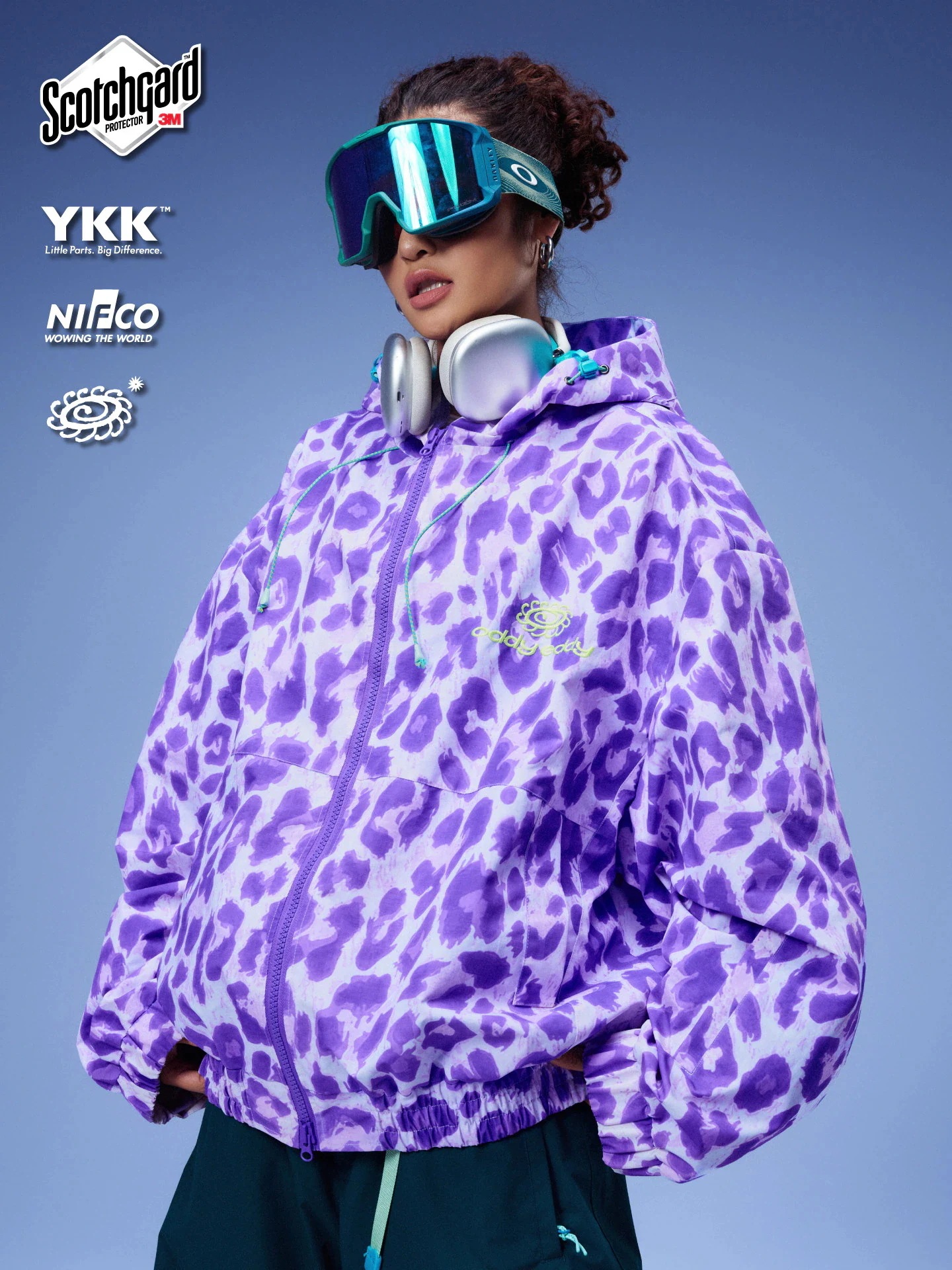 【早い者勝ちタイムセール】スノーボードウェア 20耐水圧20000mm メンズ レディース ジャケット パーカー 上単品 ヒョウ柄 紫 おしゃれ 撥水 防風 防寒 風 スノボウェア スノーウェア スキ
