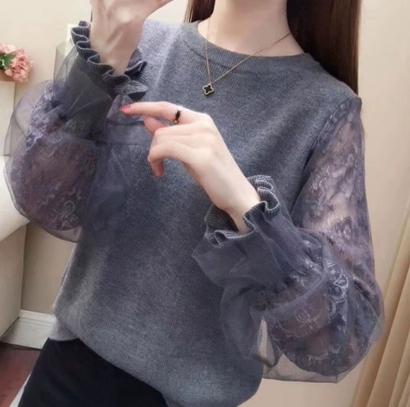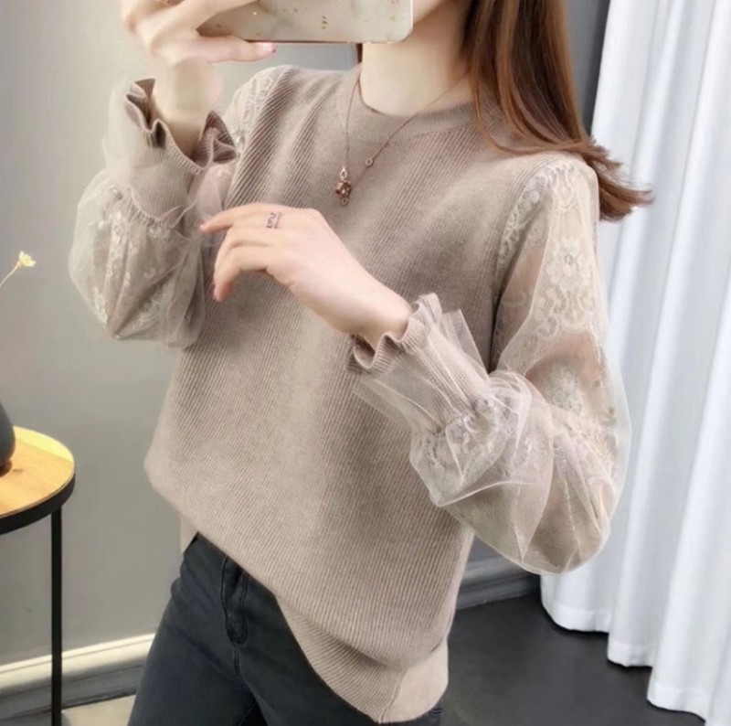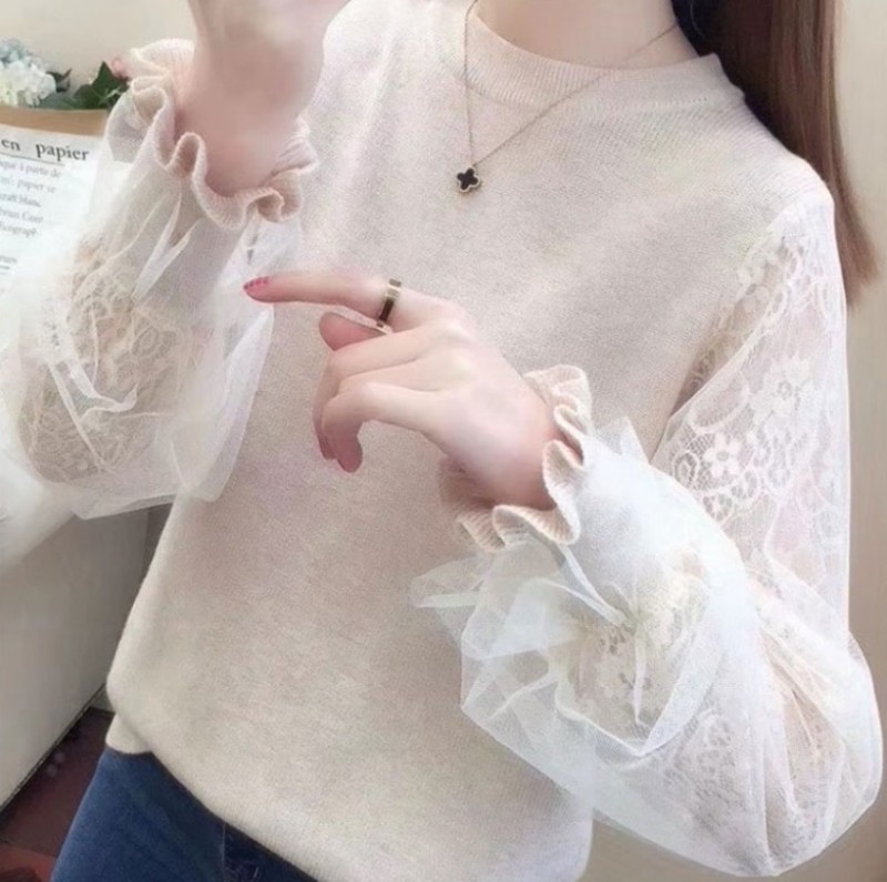 春の準備!チュール袖 切り替え ニット レディース 春 秋 ニットセーター セーター ボリューム袖 透け感 袖チュール ニットトップス プルオーバー ゆった