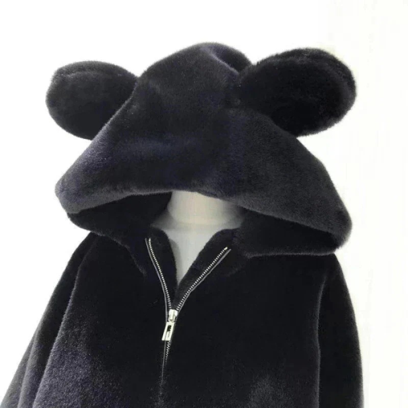 [超激安]新品入荷!冬季 新色 フード付き ルーズ 可愛い 小熊 耳デザイン 厚手 もちもち素材 ミドルレングス ウール風 アウター 女性用 ジャンパー ブルゾン
