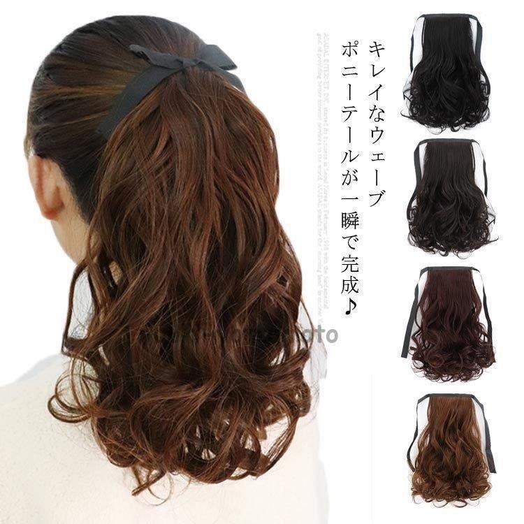 先行発売ポニーテール カール ウィッグ ミディアム 襟足 エクステ ポイントウィッグ つけ毛 部分ウィッグ リボンタイプ ウェーブ 可愛い コスプレ