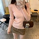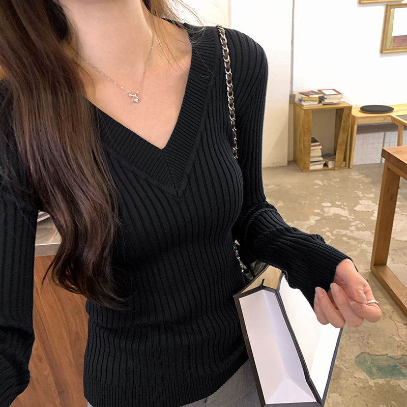 優しい雰囲気のVネックストライプ長袖インナーニット女性秋冬新作シルエットトップス