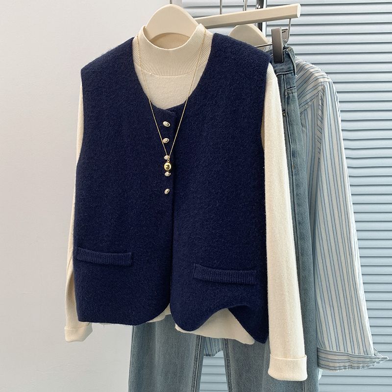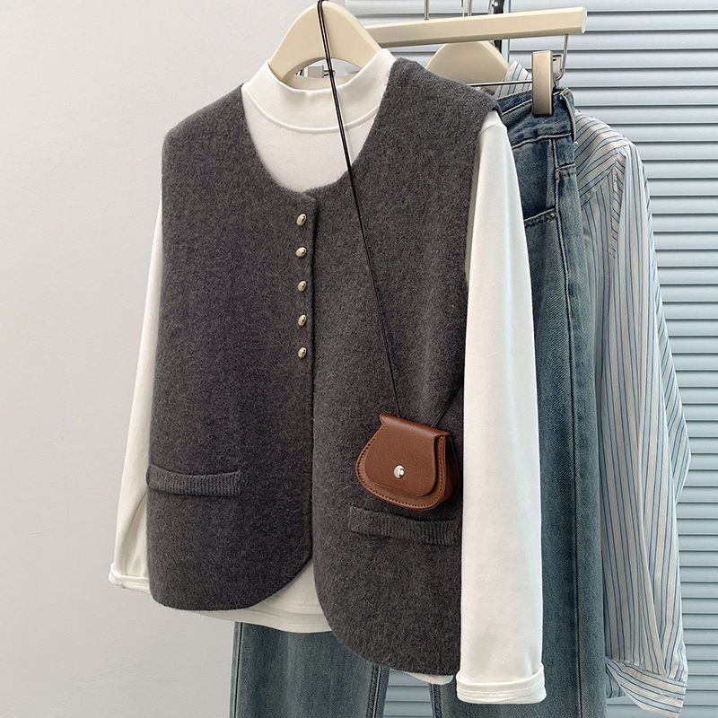 秋冬新作韓国風シックワインレッドニットベストカーディガン女性2026上品キャミソールノースリーブトップス