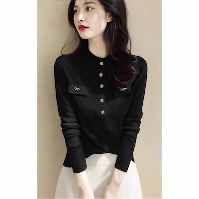 2026新作ニッチ高級感長袖トップス女性秋冬スリムシルエットベースレイヤートップス
