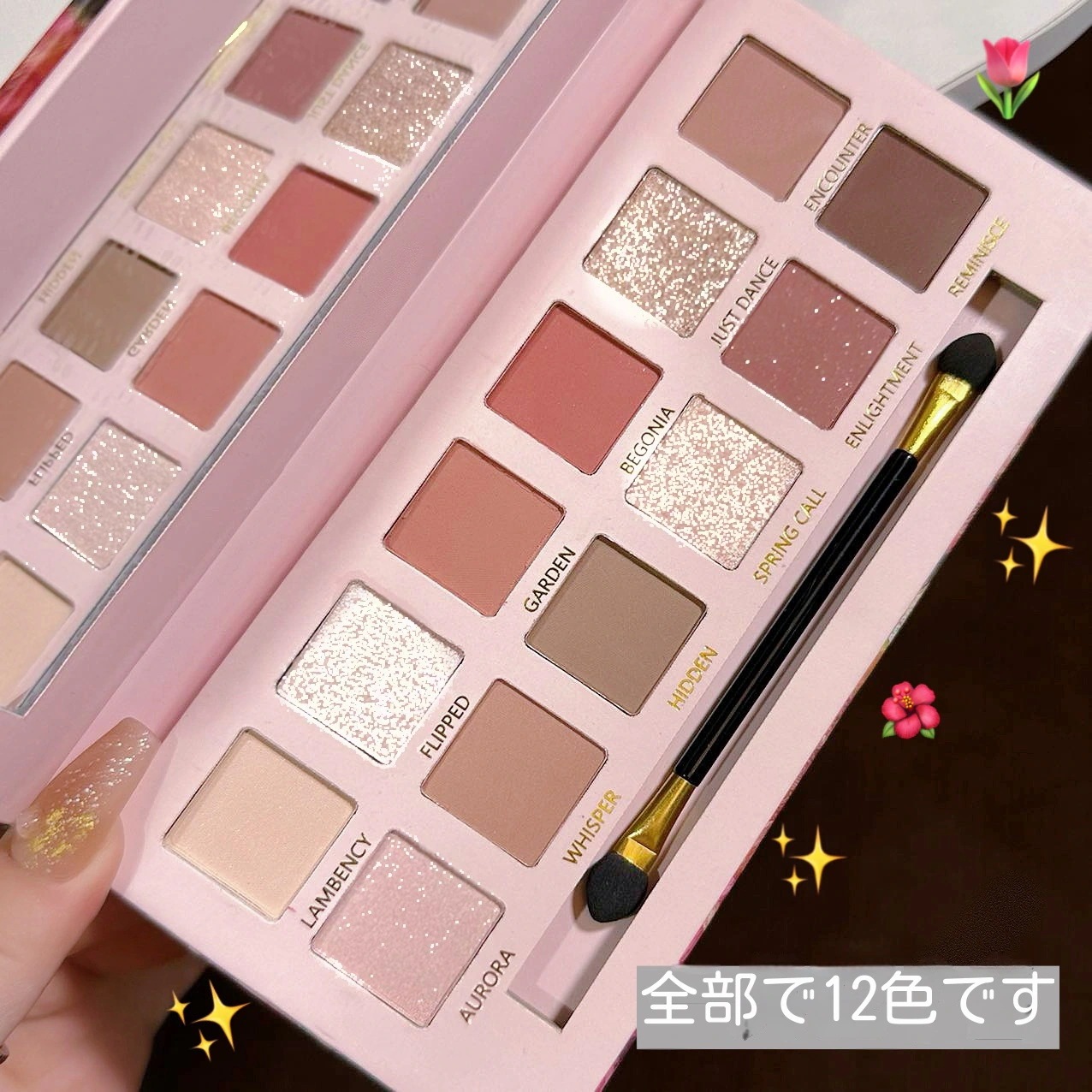 新商品の12色のカイドウの花の油絵の風のピンクのブラウンのアイシャドーの皿のつや消しの真珠の光の細いきらきらと輝く大きい地色の低い飽和のアイシャドーの皿