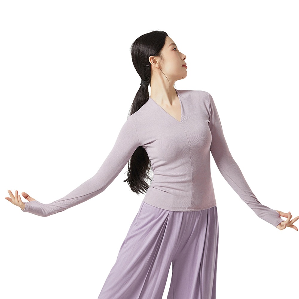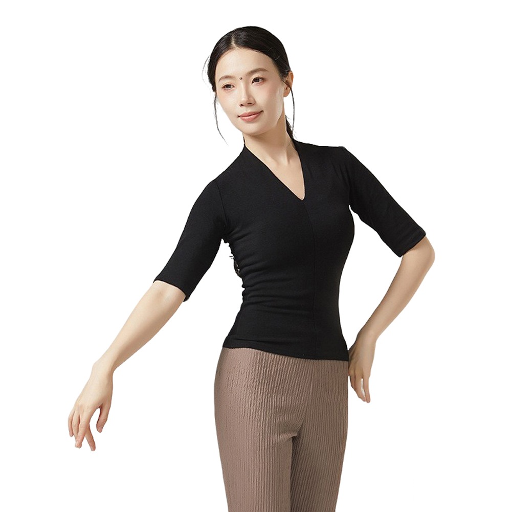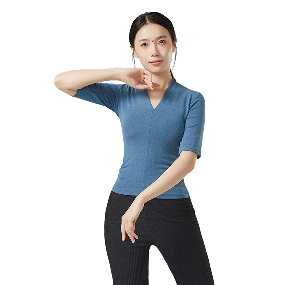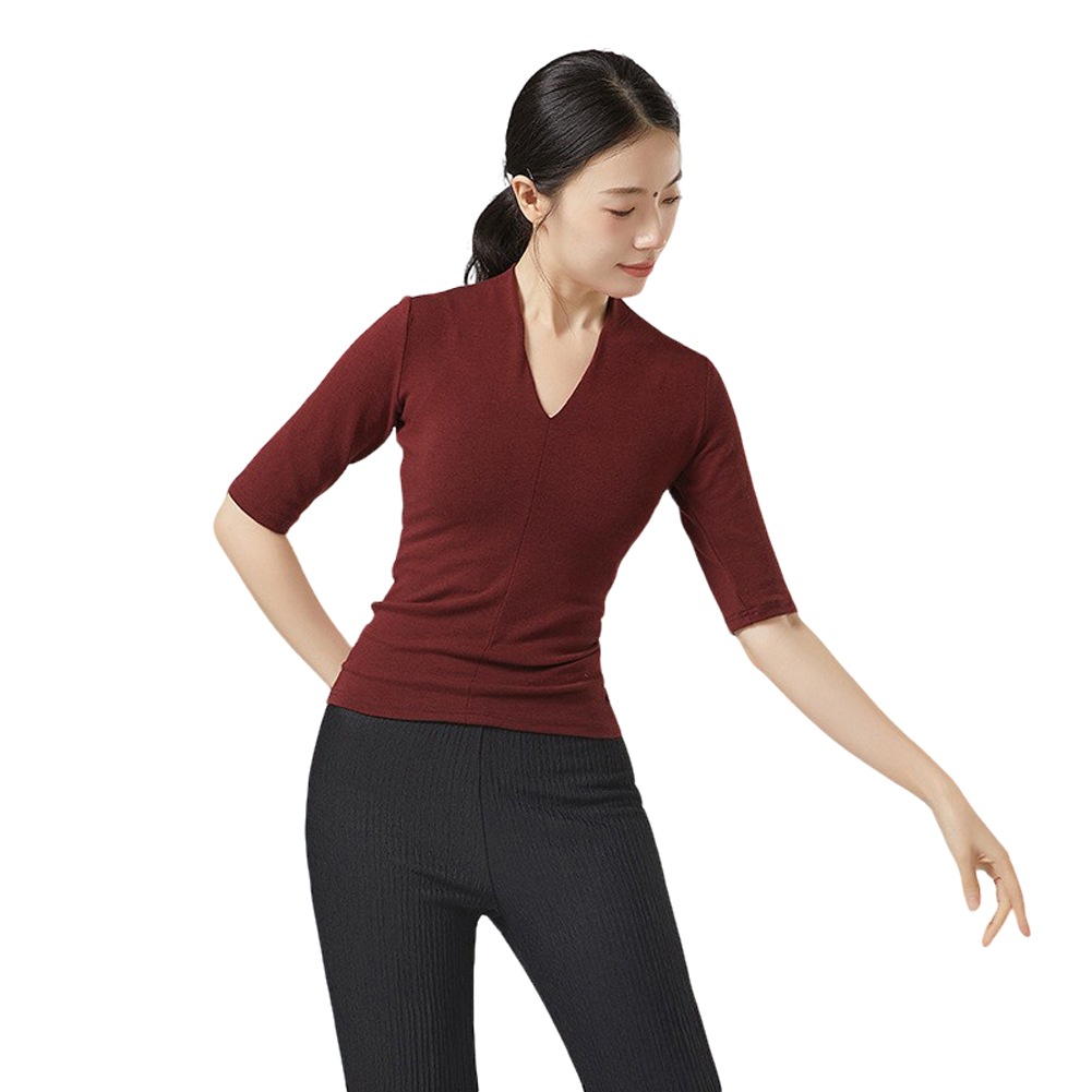 社交ダンス トップス バレエウエア 大人 レッスン着 Vネック モダンラテン衣装 ダンスTシャツ 発表会 ステージ衣装 ストレッチ ジャズ コンテンポラリー対応 ヨガ練習着 女性用