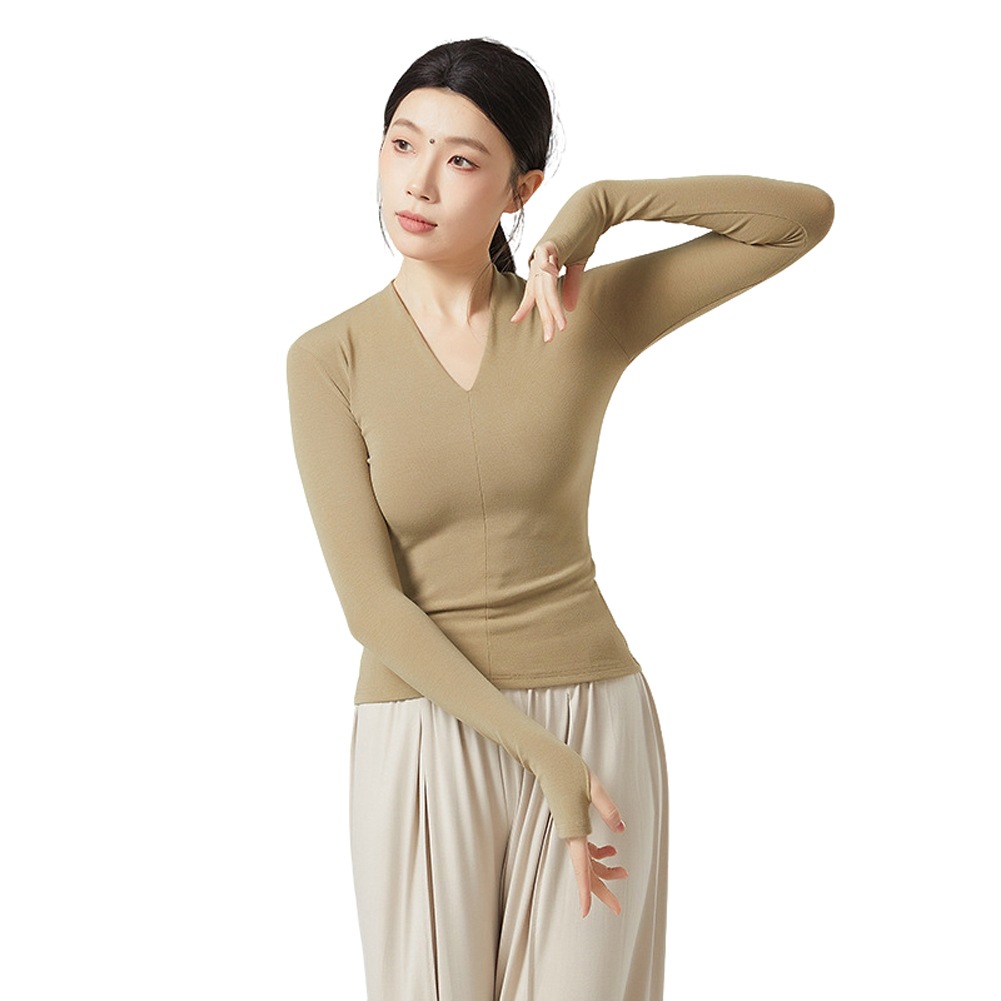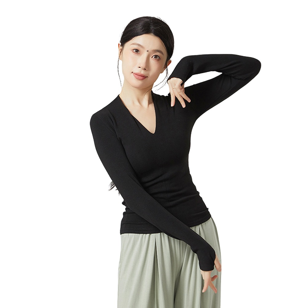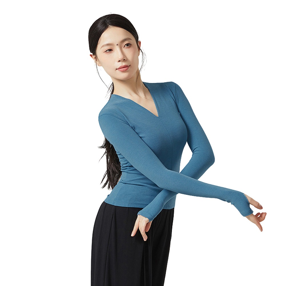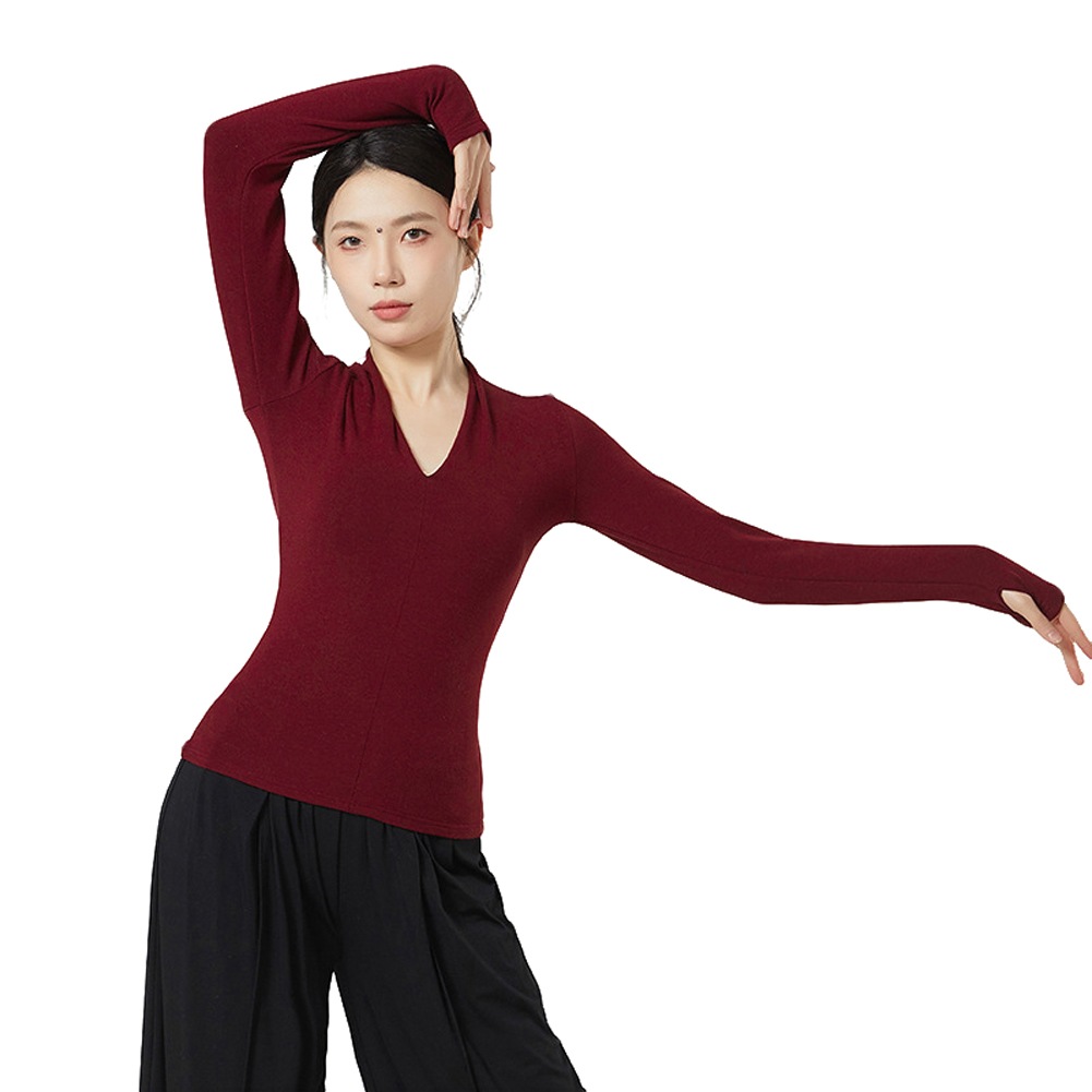 社交ダンス トップス バレエウエア 大人 レッスン着 Vネック モダンラテン衣装 ダンスTシャツ 発表会 ステージ衣装 ストレッチ ジャズ コンテンポラリー対応 ヨガ練習着 女性用
