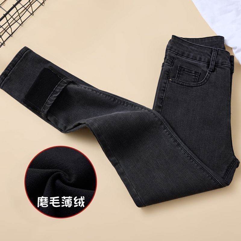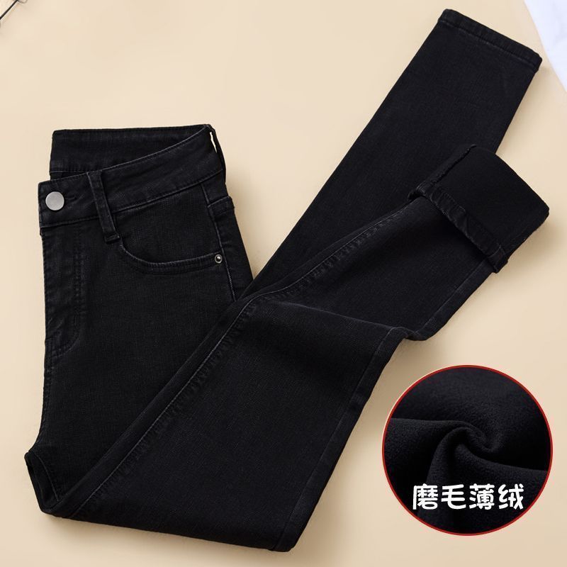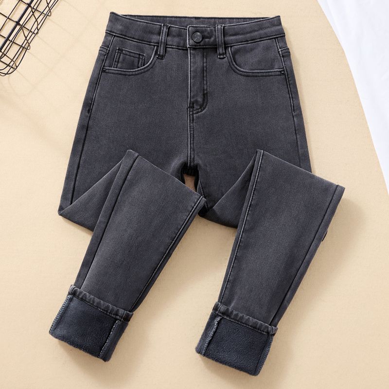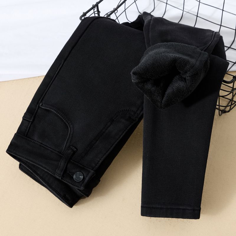 裏地付き厚手デニムパンツ2026年秋冬新作スキニーシルエット高ウエストストレッチスキニーパンツ