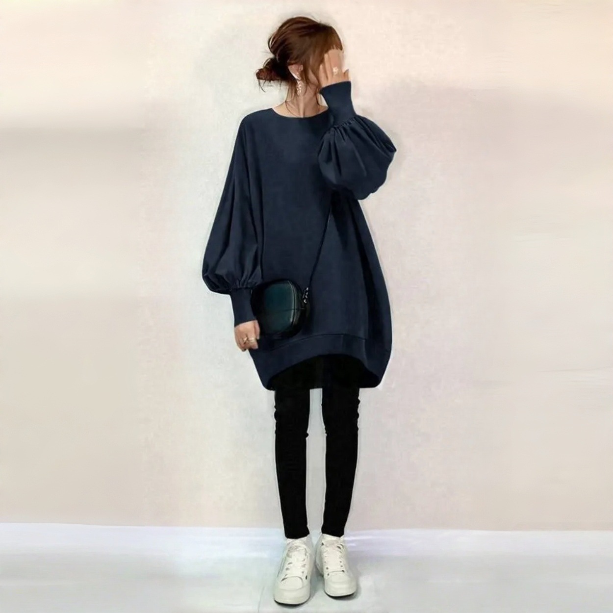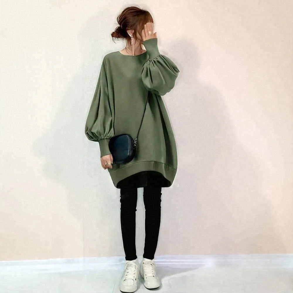 スウェット レディース 無地 トレーナー クルーネック バルーン袖 ゆったり 体型カバー 春秋 日系 トップス
