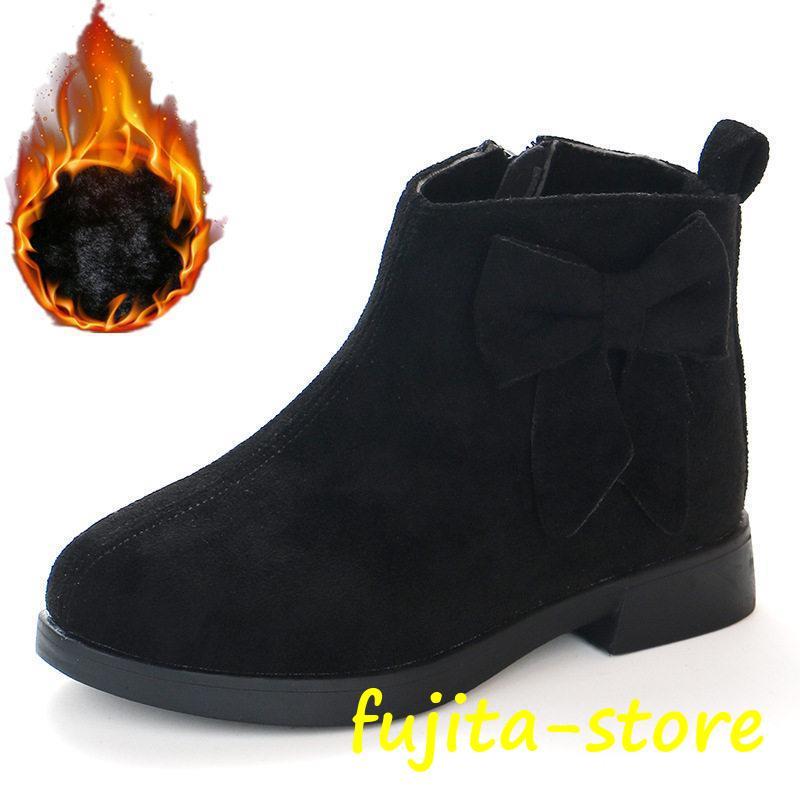 ショートブーツ 女の子 キッズ オシャレ きれいめ リボン 防寒 あったか 秋 冬 姫様風 可愛い 防風保温 ジュニア 通園 通学