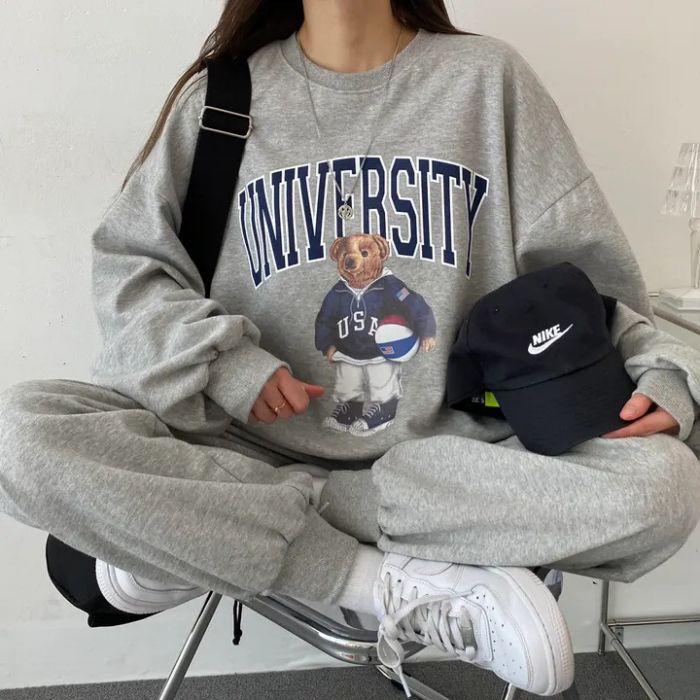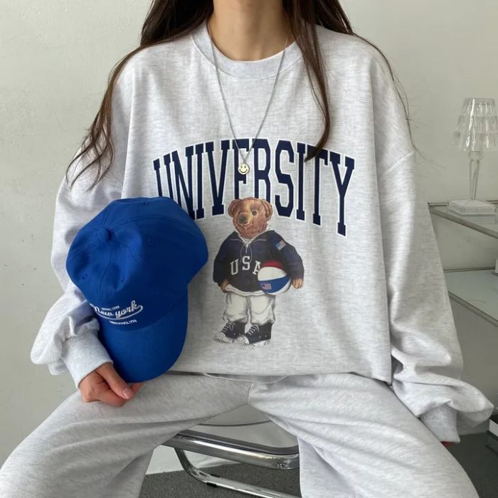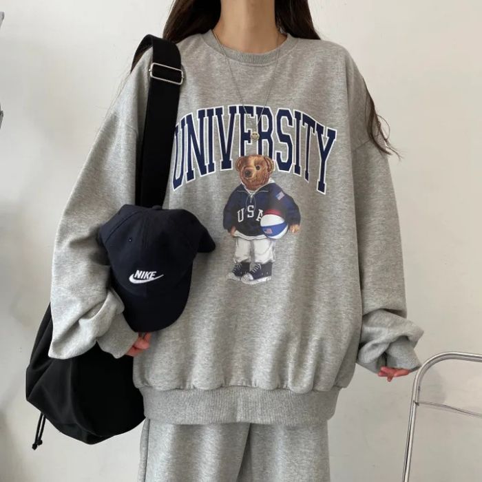 セットアップ レディース スウェット 上下セット クマ 可愛い カジュアル ゆったり 熊柄 春秋 冬 大きいサイズ