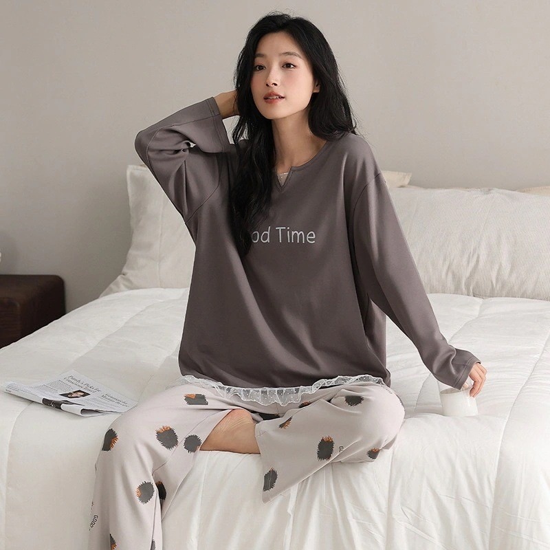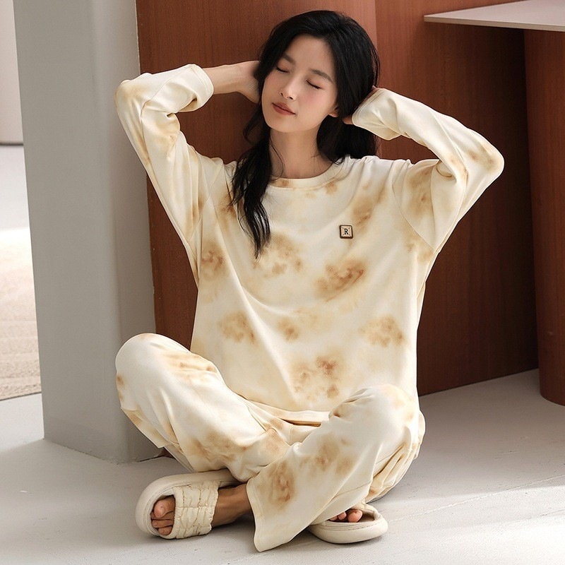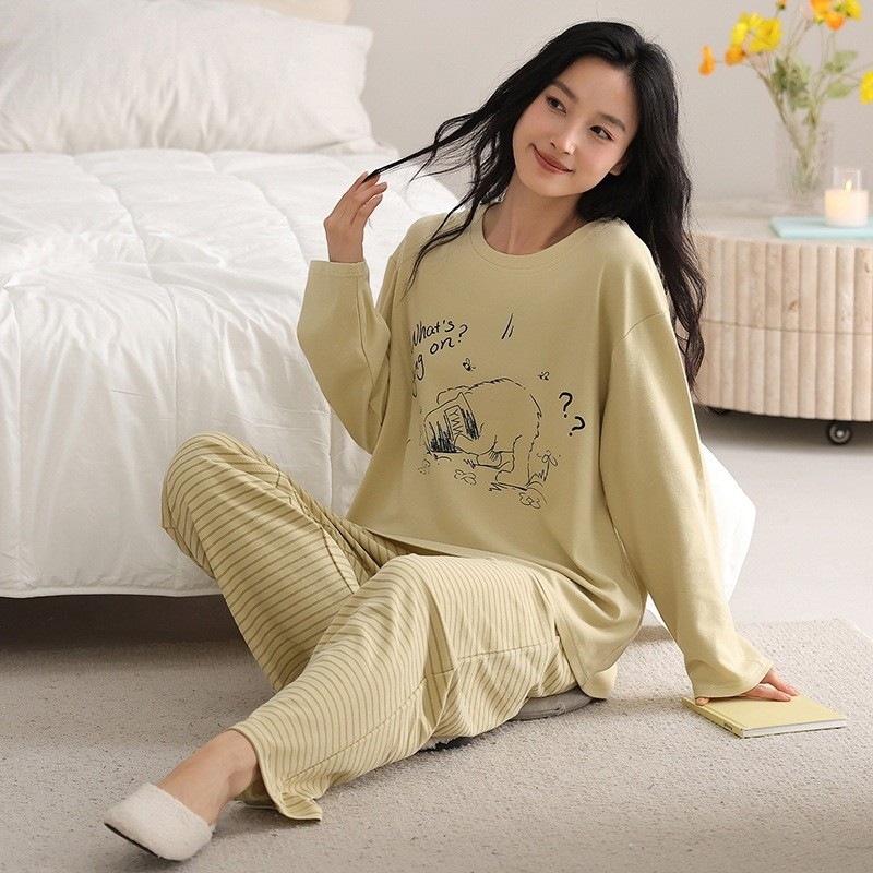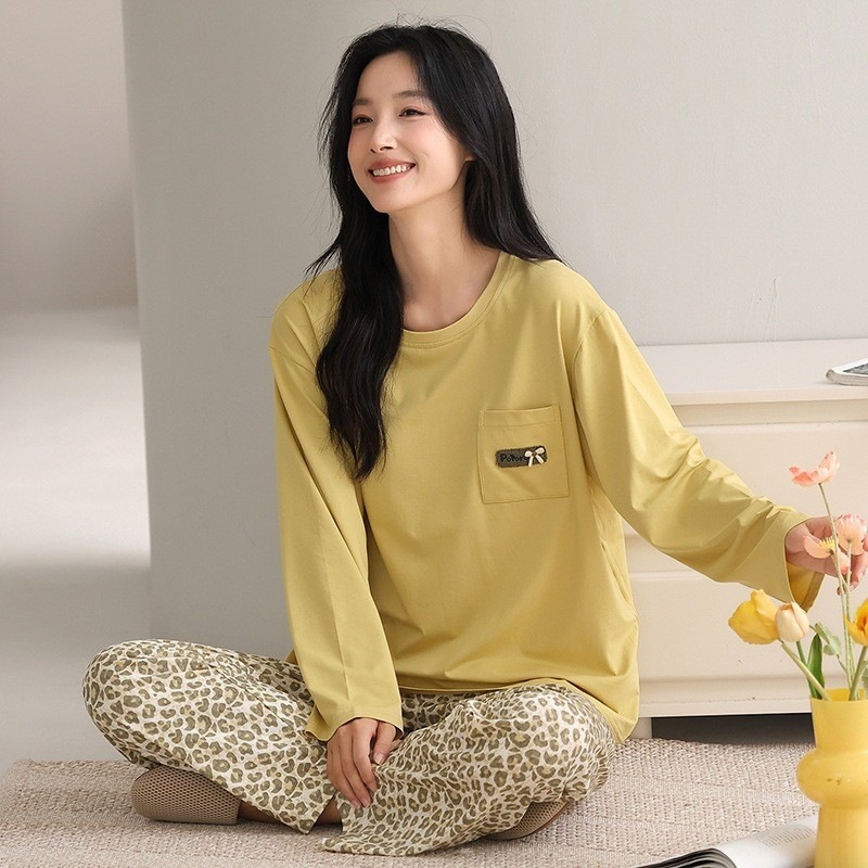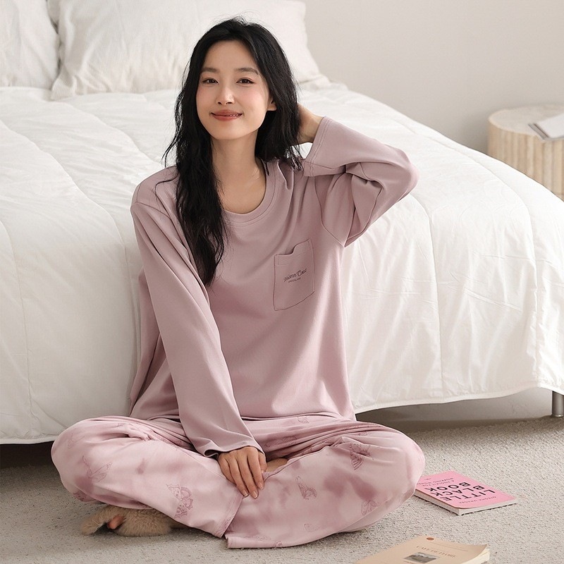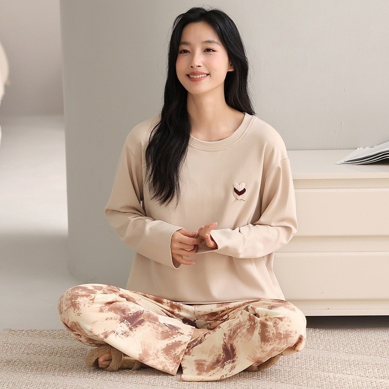 あったかルームウェア パジャマ 婦人用 春・秋用 長袖 丸首 薄手 アウターとしても着用可 韓国風 カジュアル ルームウェア セット