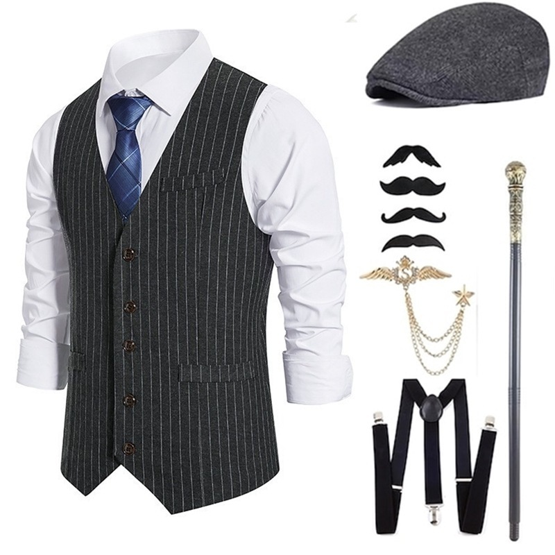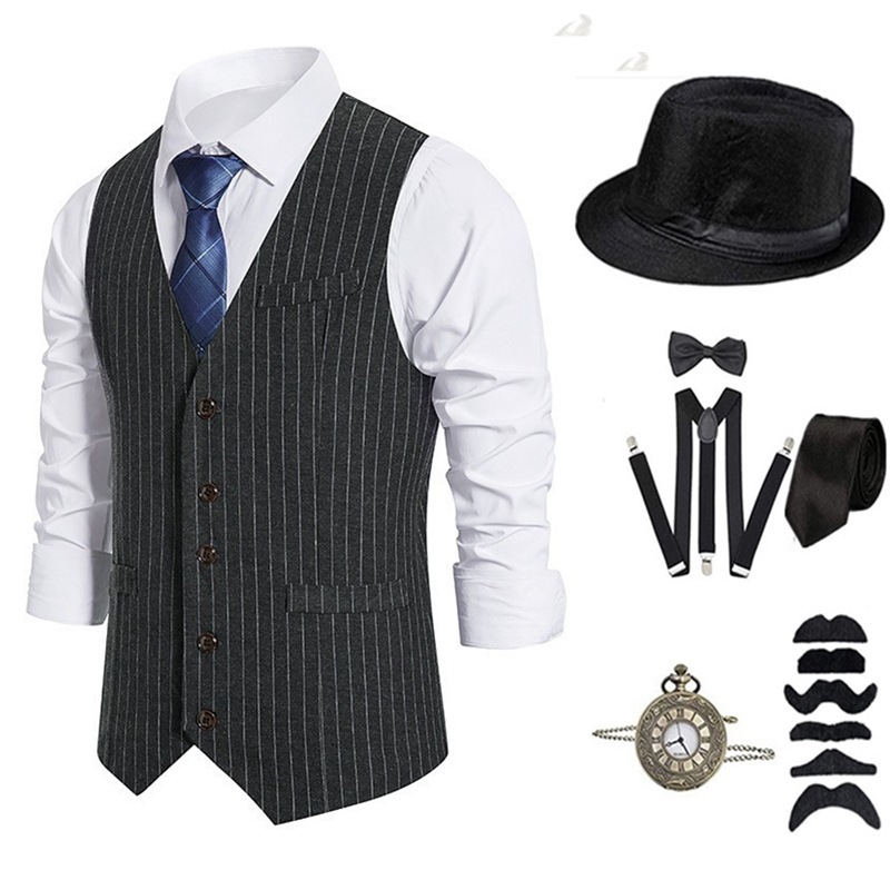 メンズストライプシングルブレストベストヨーロッパサイズのギャツビーカジュアルブレザー