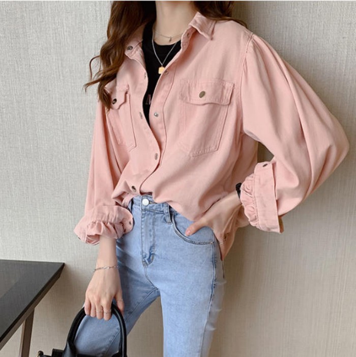 デニムシャツ レディース 長袖 トップス ダンガリーシャツ 羽織り ライトオンスデニム ブラウス おしゃれ 無地 秋服