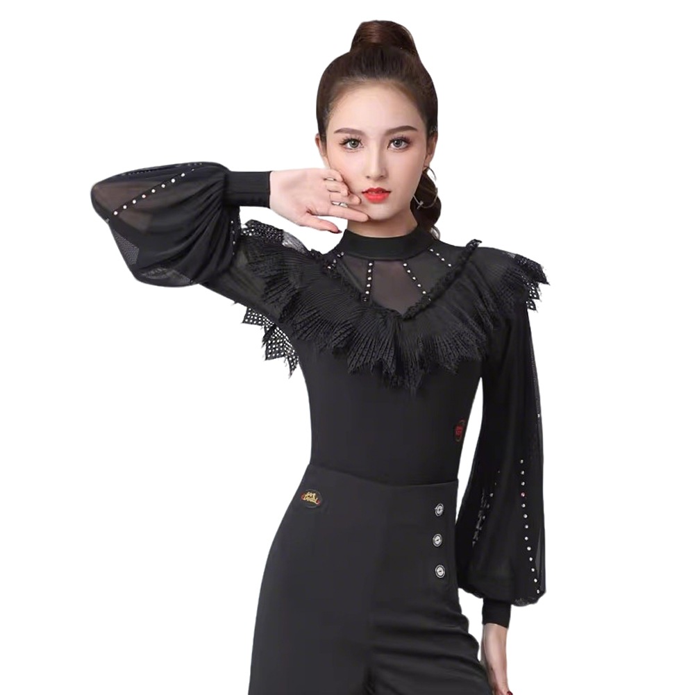 ラテンダンス トップス レオタード 大人 社交ダンス トップス レディース オールインワン ブラック キラキラビジュ インターナショナルダンス モダンラテン衣装 ダンスTシャツ 発表会 ステージ衣装