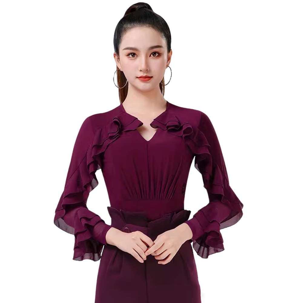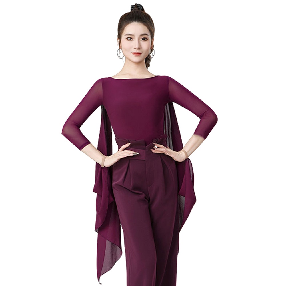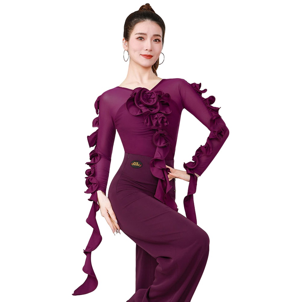 ラテンダンス衣装 トップス パープル 社交ダンス 練習着 トップス レオタード 大人 フラメンコ衣装 連体服 ダンスウェア モダンラテン衣装 ダンスTシャツ 肌着 発表会 ステージ衣装