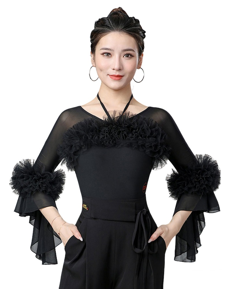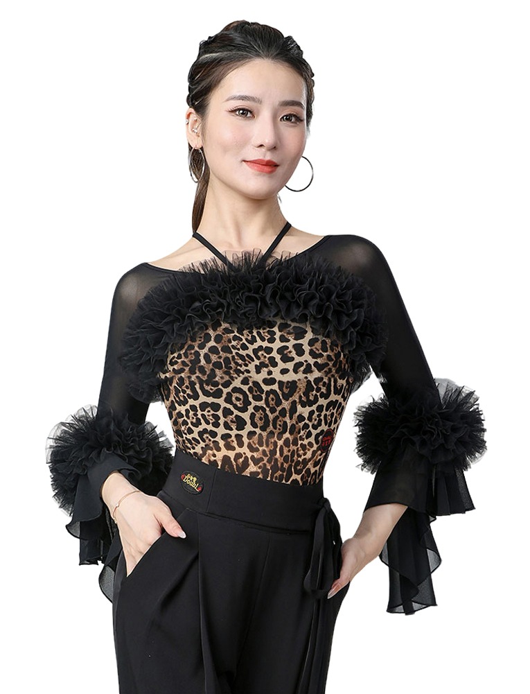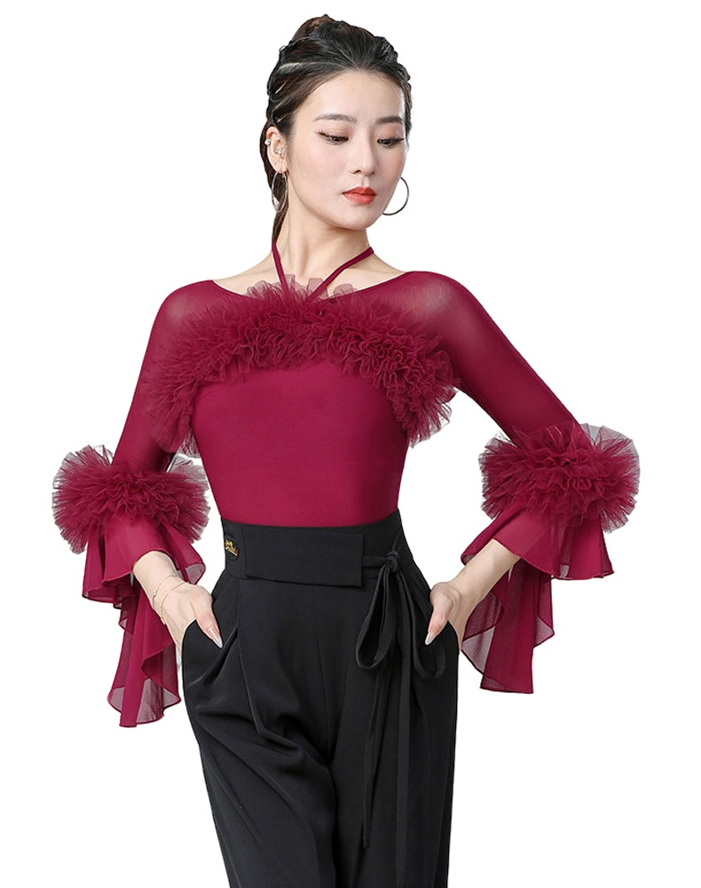 Vネック ラテンダンス衣装 トップス 社交ダンス 練習着 トップス レオタード 大人 フラメンコ衣装 連体服 ダンスウェア モダンラテン衣装 ダンスTシャツ 肌着 発表会 ステージ衣装