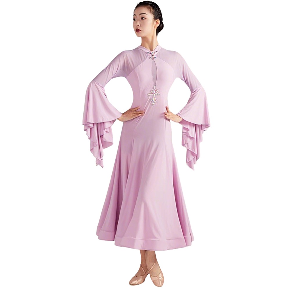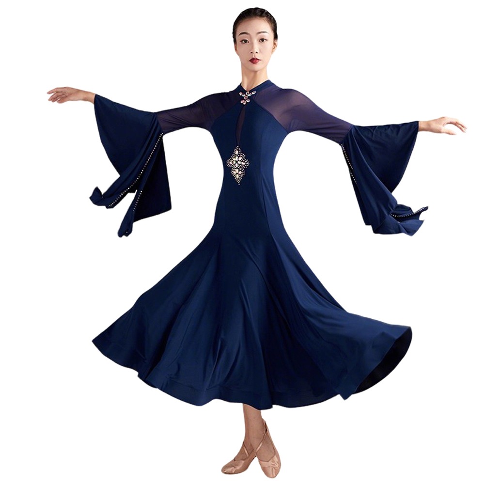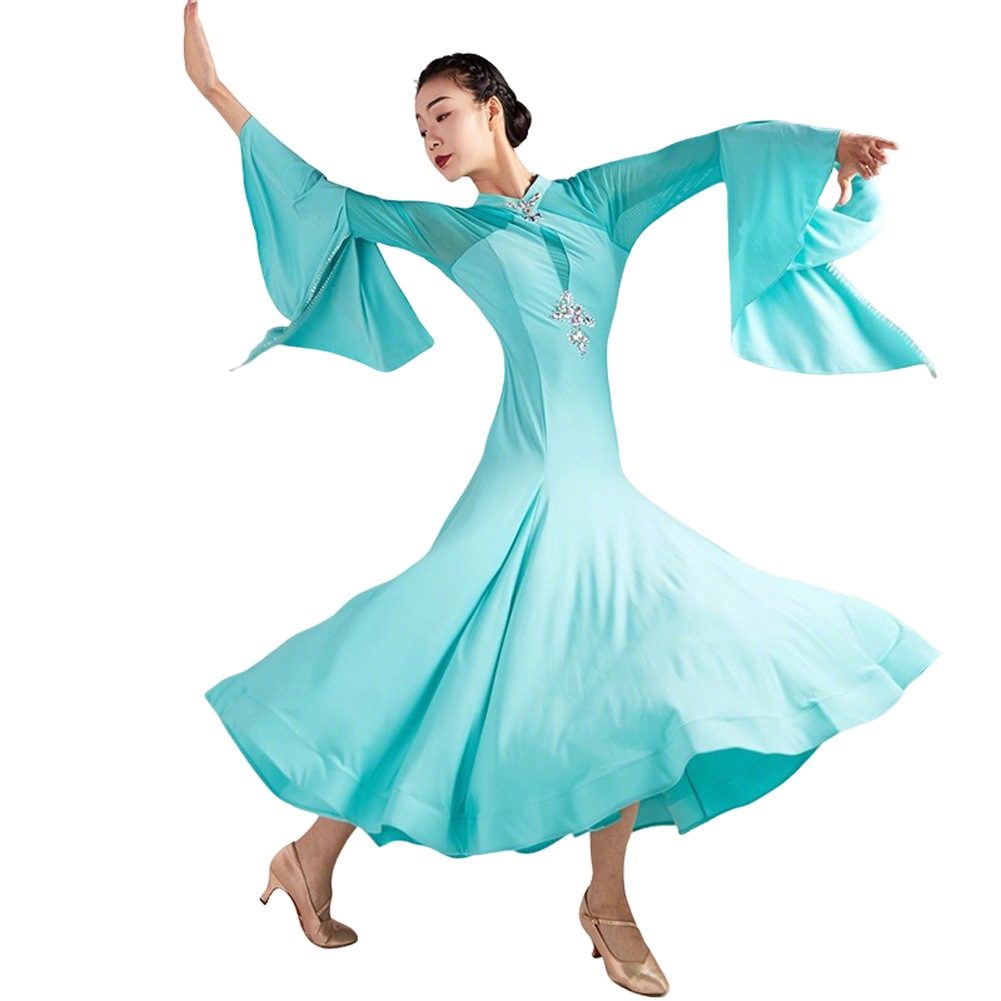 社交ダンス ドレス モダン ダンスウエアー レディース スピーカースリーブ ラテンダンス衣装 ワンピース 大きい裾 高級練習競技着 イベント 社交ダンス ドレス ワンピース 社交ダンス ドレス 練習着