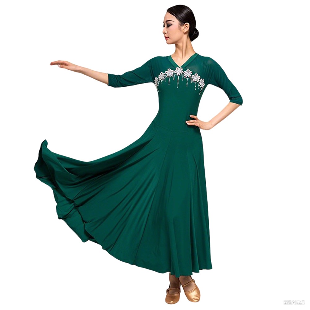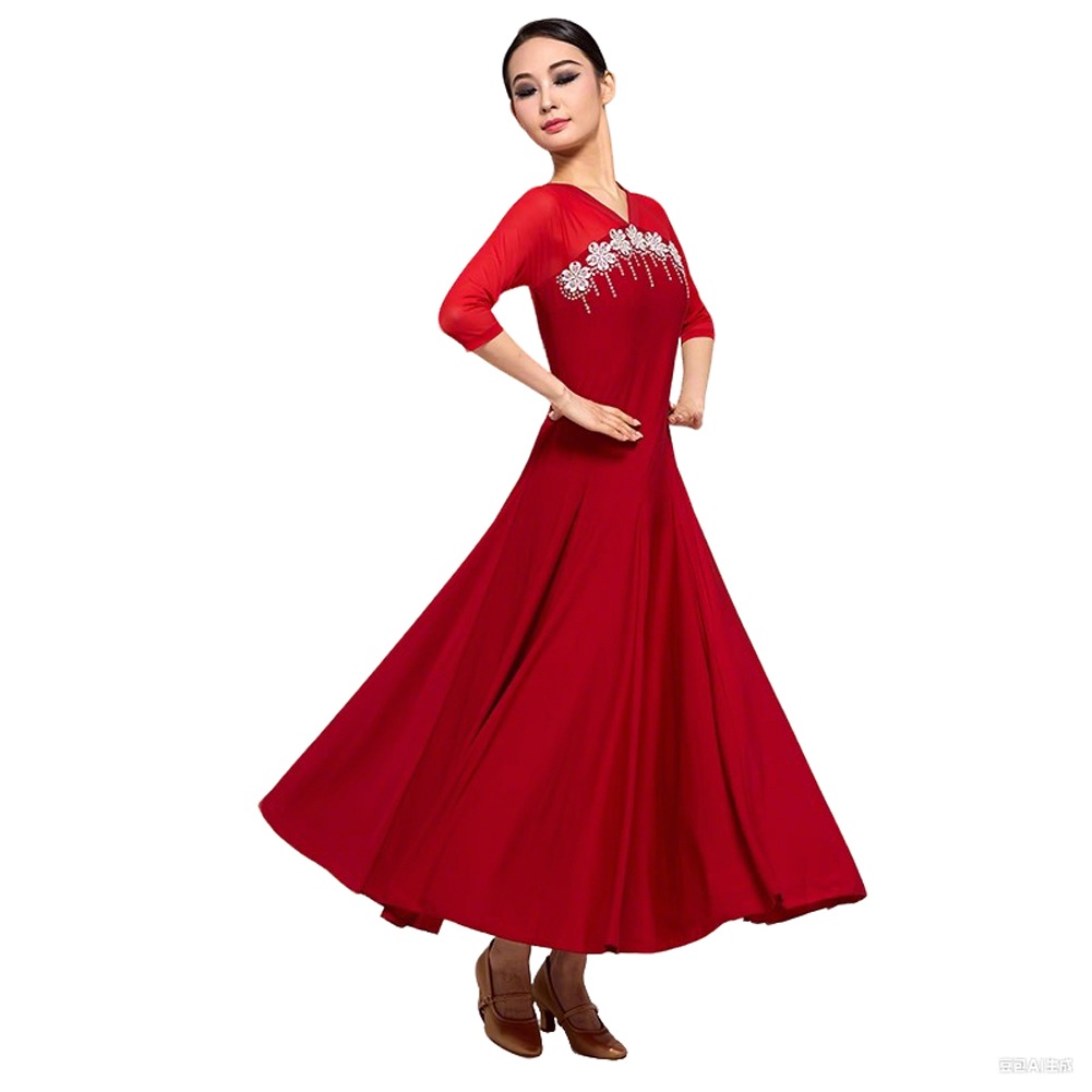 社交ダンス ドレス Vネック モダン ダンスウエアー レディース ラテンダンス衣装 ワンピース 高級練習競技着 イベント 社交ダンス ドレス ワンピース 社交ダンス ドレス 練習着 モダンダンス ドレ