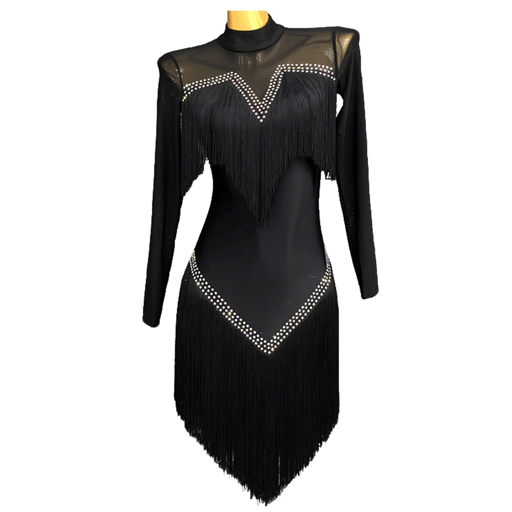 ラテンダンス衣装 フリンジ ラテンドレス モダンドレス 不規則 長袖 ダンスウエア 競技 デモ ダンス衣装 ステージ衣装 演出用 レディース ダンスウェア 社交ダンスドレス レディース 大きいサイズ