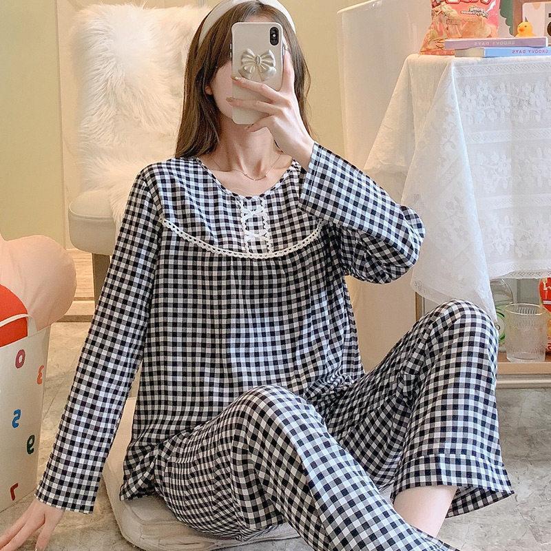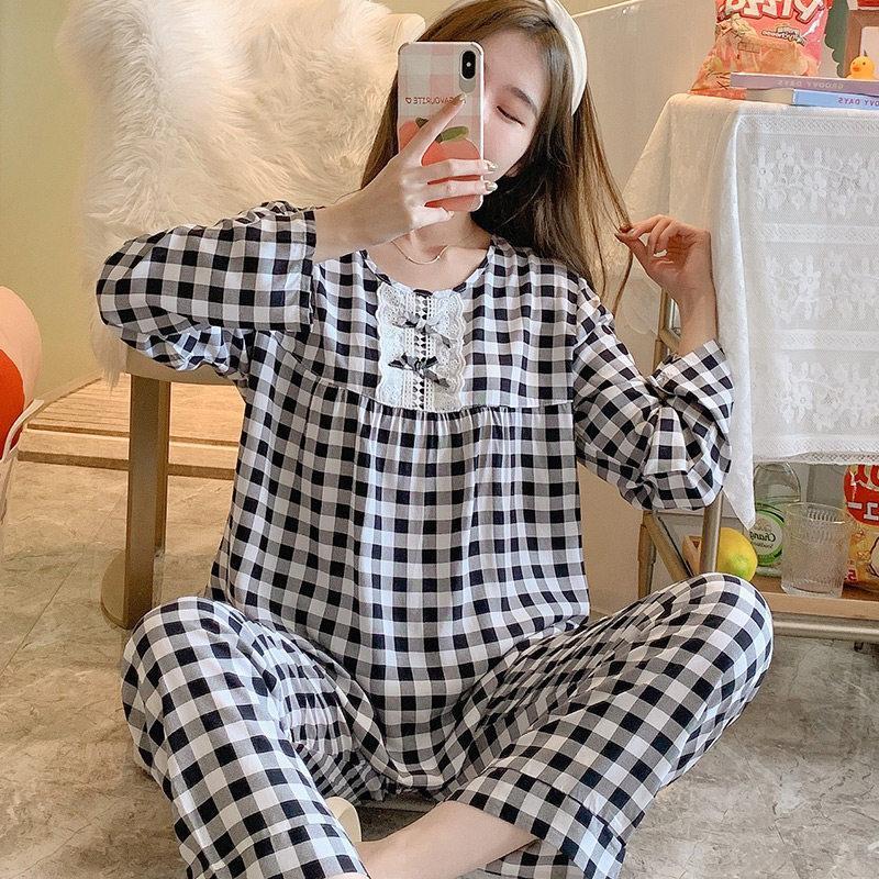 韓国風 冬 チェック柄パジャマ 春 女性 長袖ルームウェア パジャマ レディース お姫様 部屋着 ゆったり 秋 製品 気質 ロングパンツ上下セットルームウェア